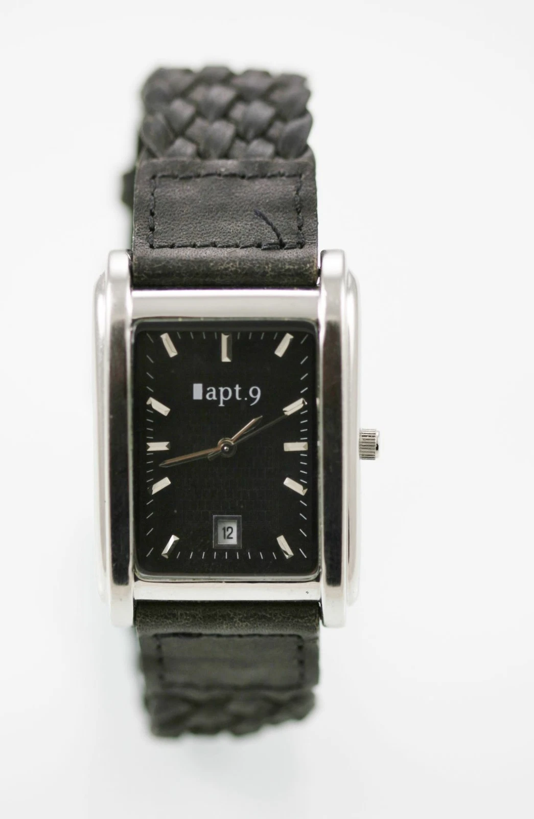 Apt 9 Watch Men Silver Stainless Leather Black Water Resistant Date Gray Quartz