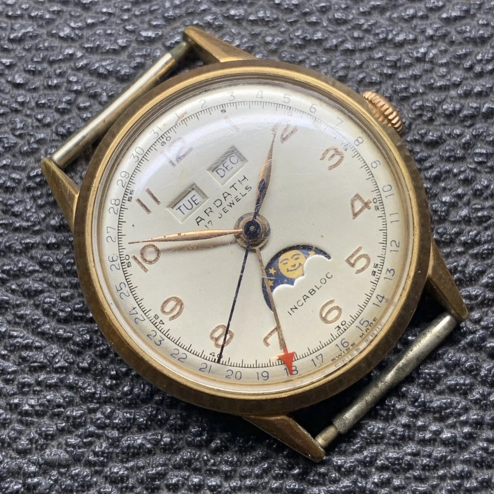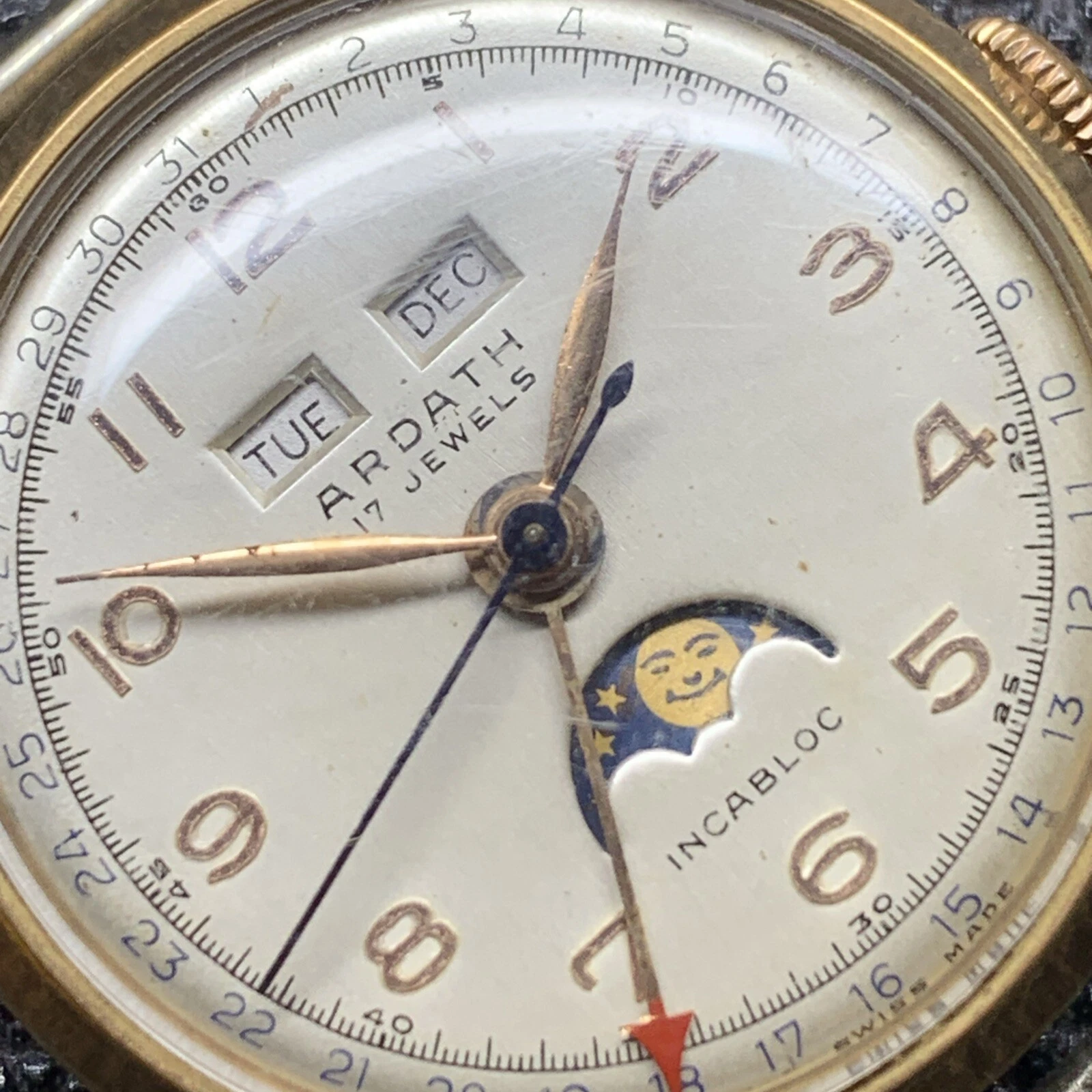 Vintage SS/GP Ardath Triple Calendar Moonphase Venus 1221