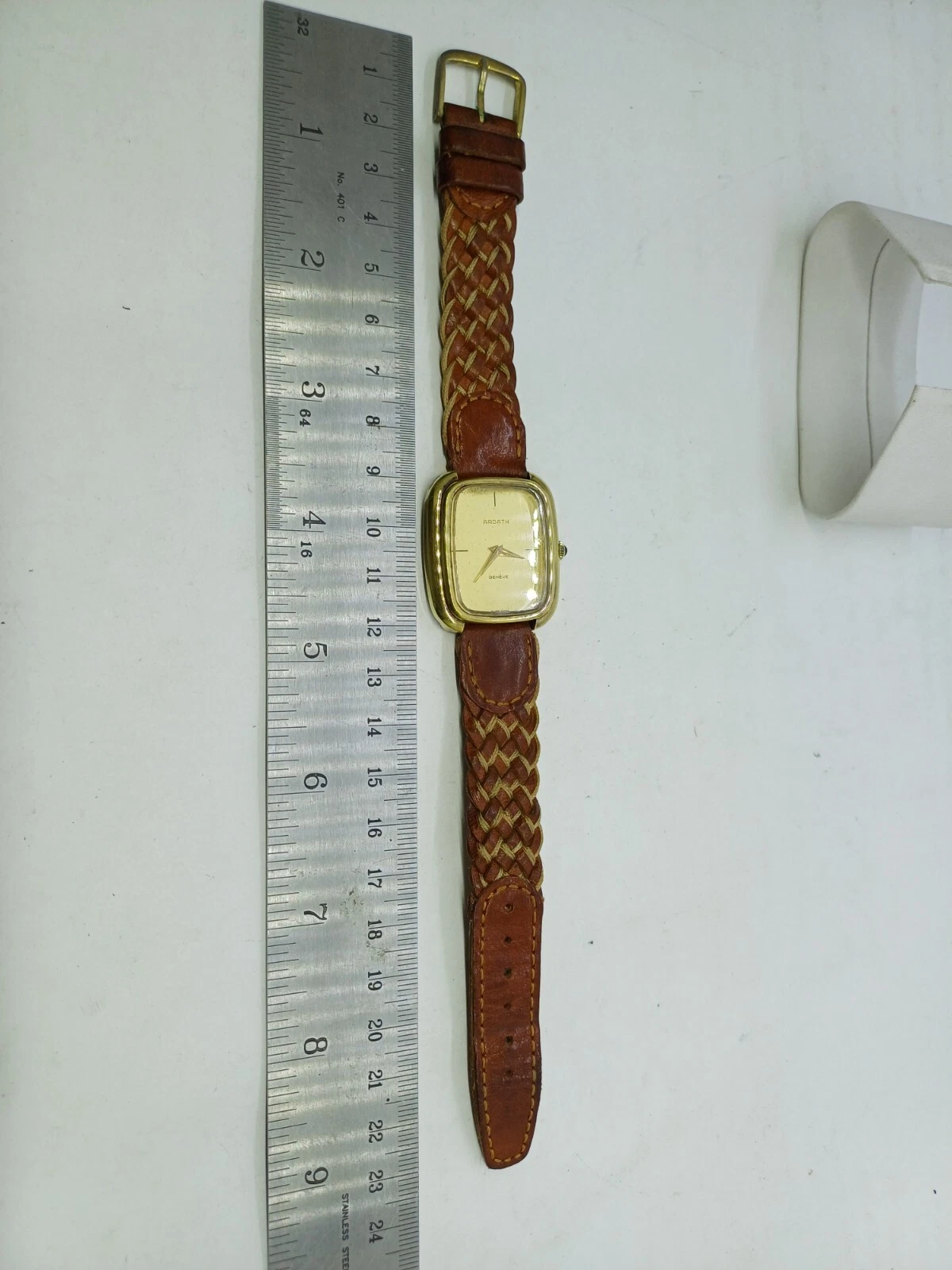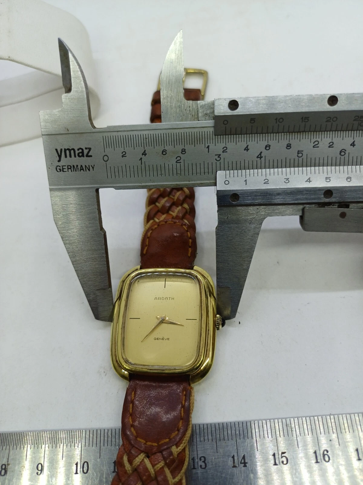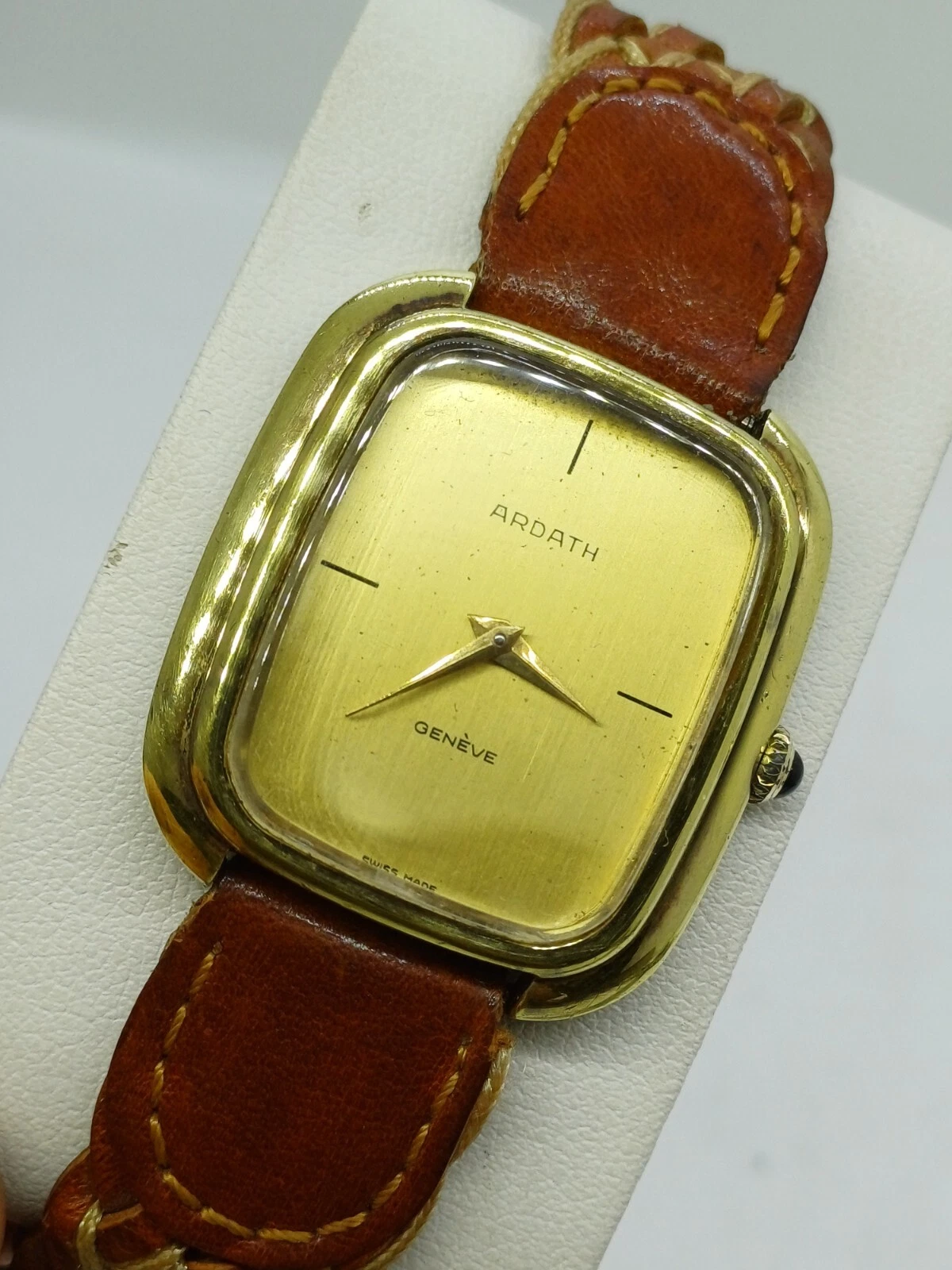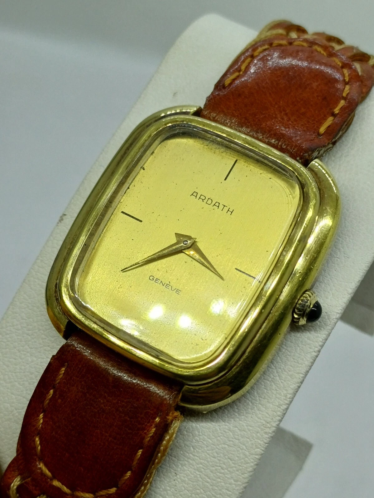 VINTAGE ARDATH GENEVE MANUAL TANK WATCH MENS GPLD.P SWISS REF.82.741 LEATHER