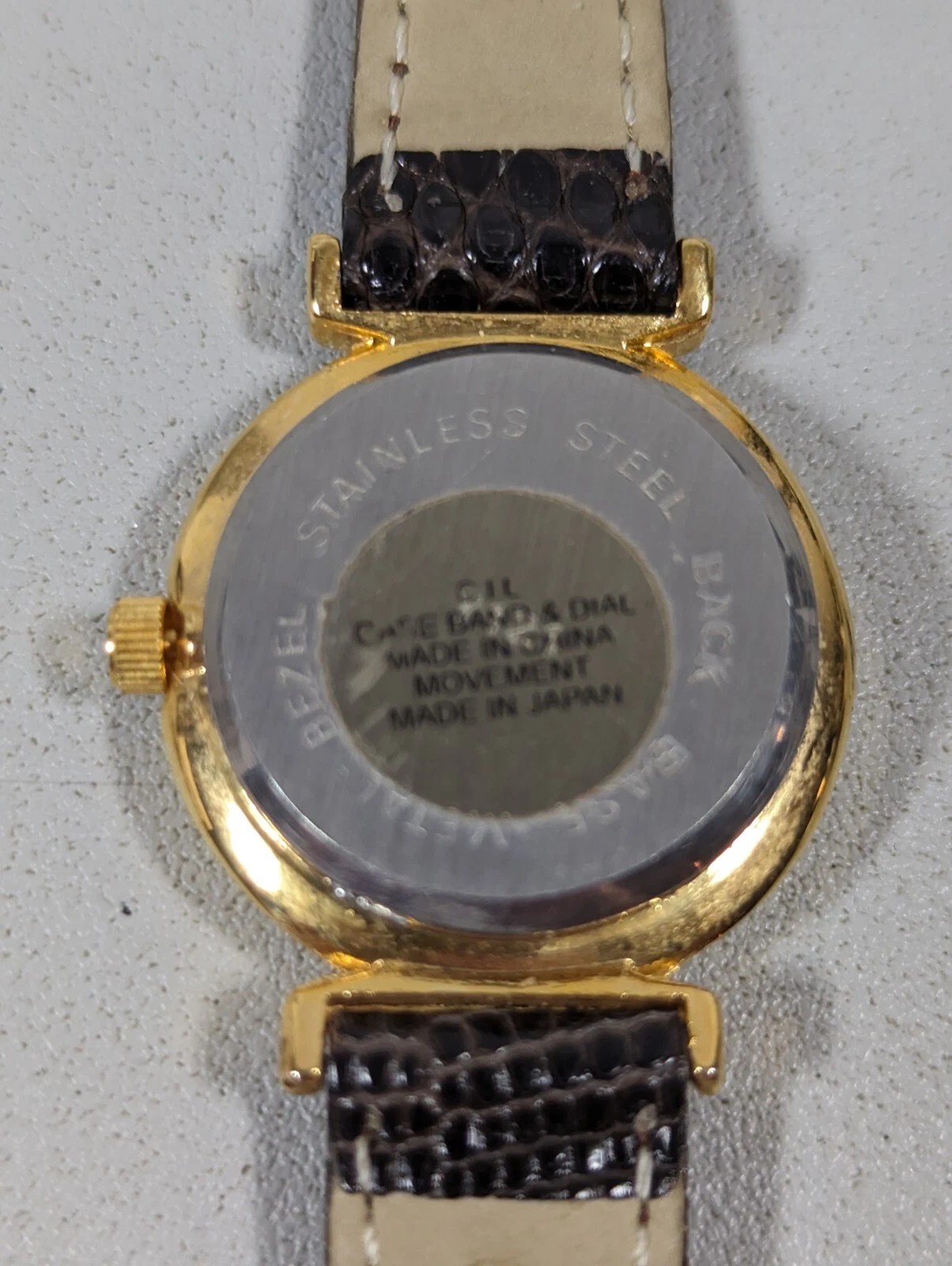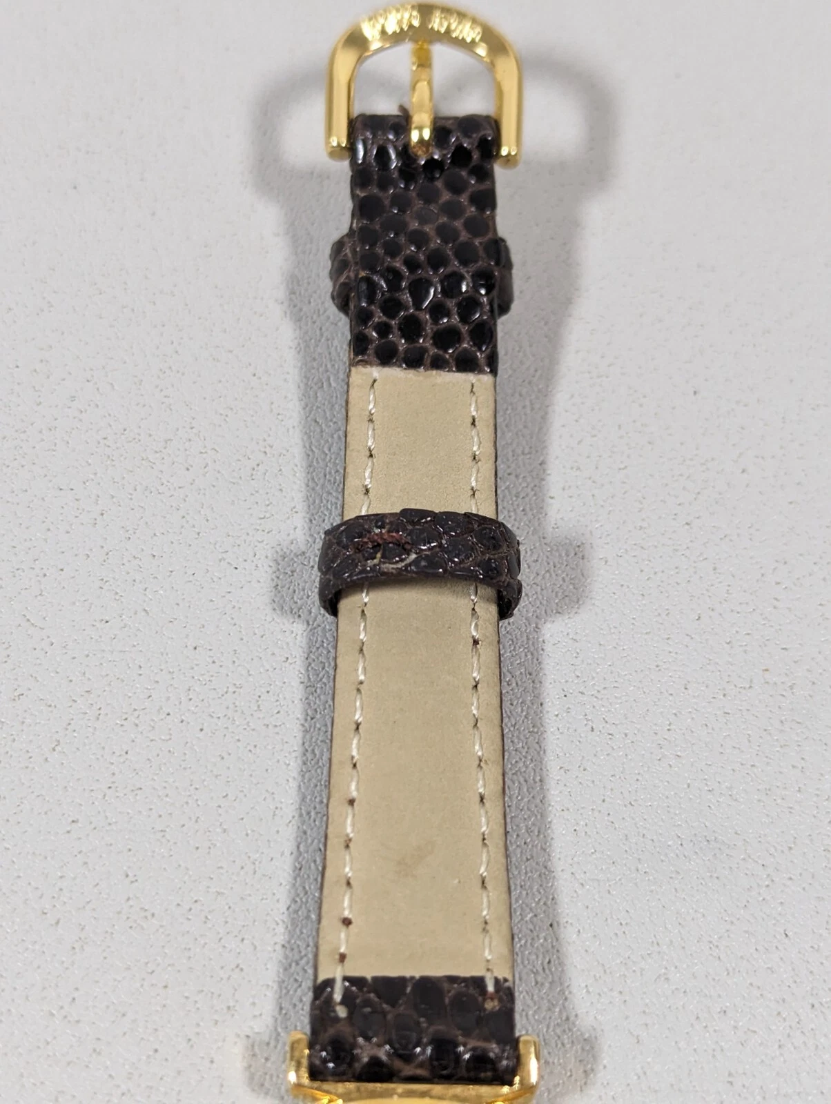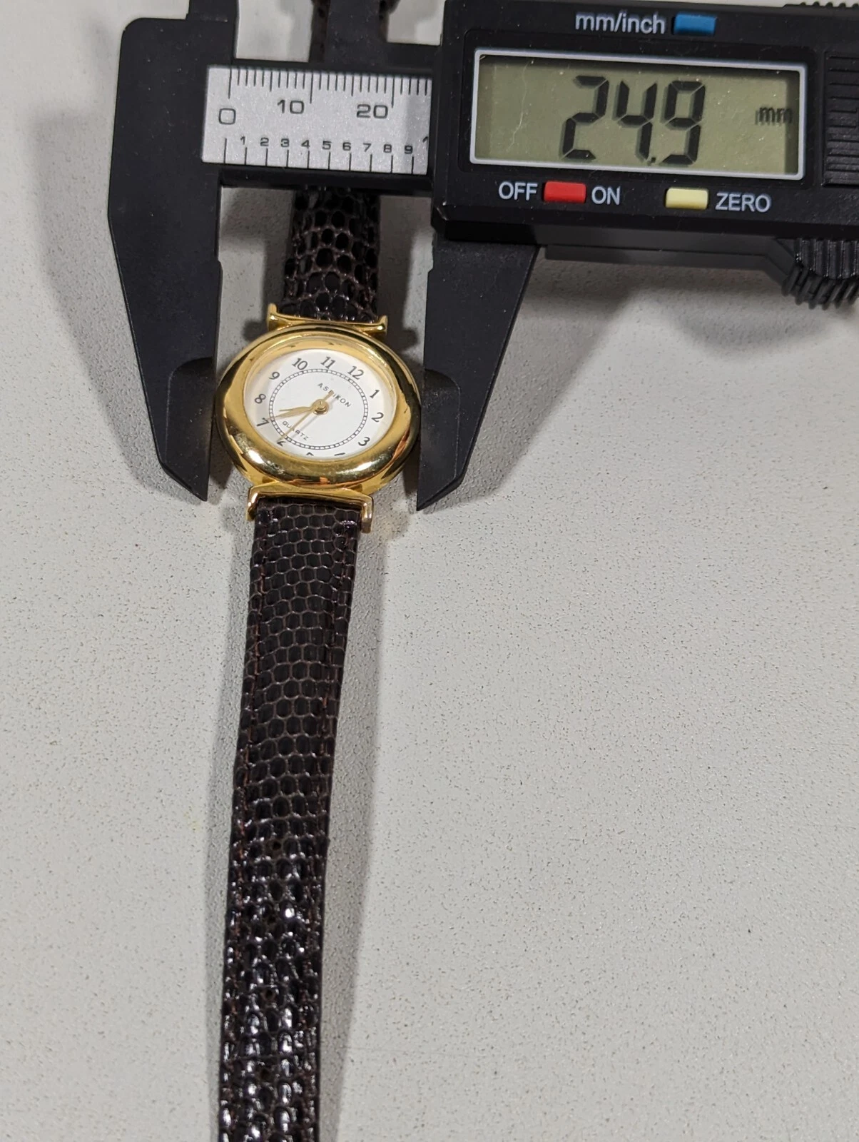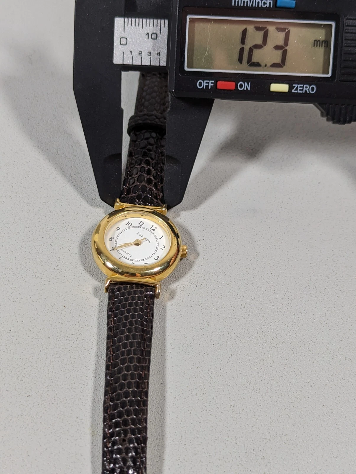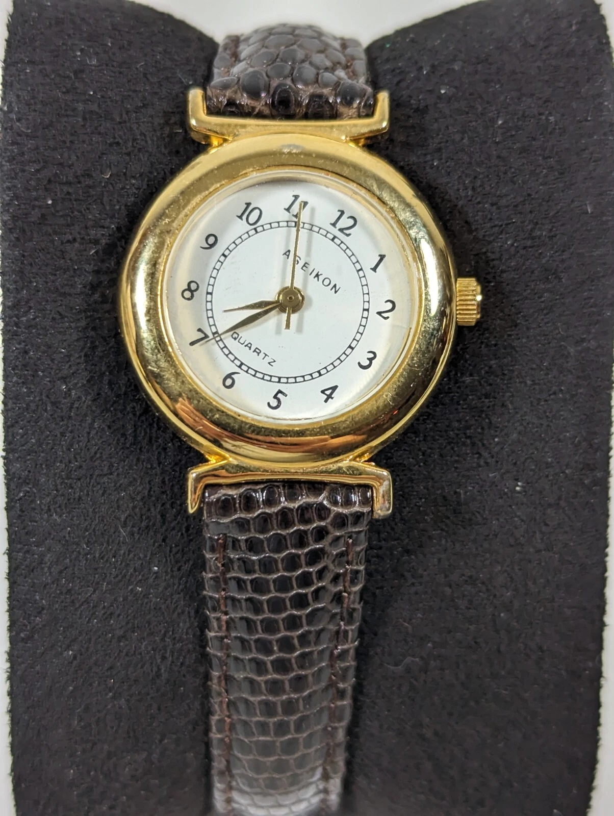 Aseikon WomansWhite Dial Round Gold Tone Case Brown Leather Band Watch 7 Inch