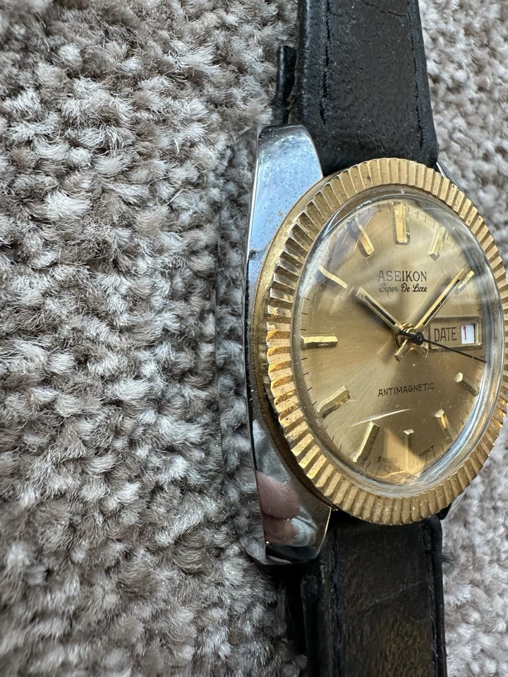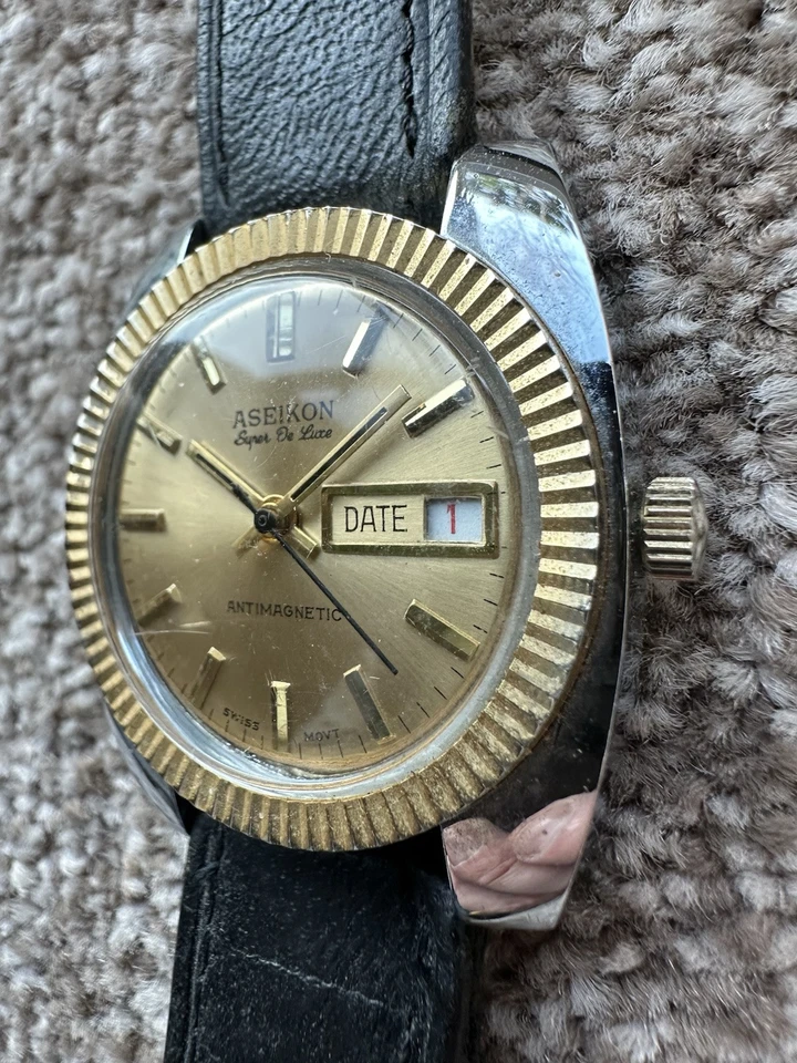 Vintage Men’s Aseikon Super Deluxe Hand Wind Watch 1970s BFG 866 Working