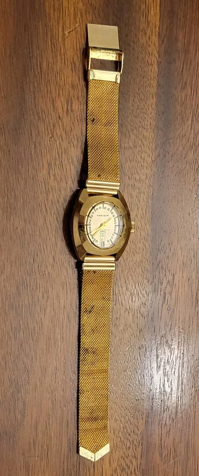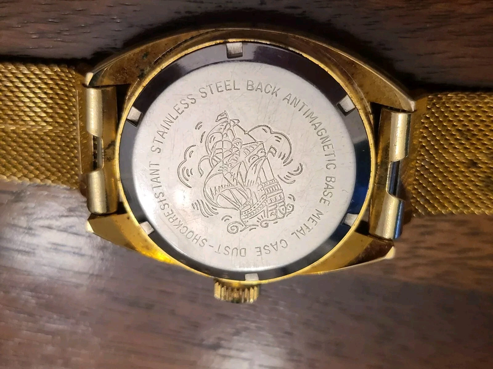 1970s, ASEIKON 22 Stones Watch Antimagnetic Date Mesh Band Vtg Hong Kong