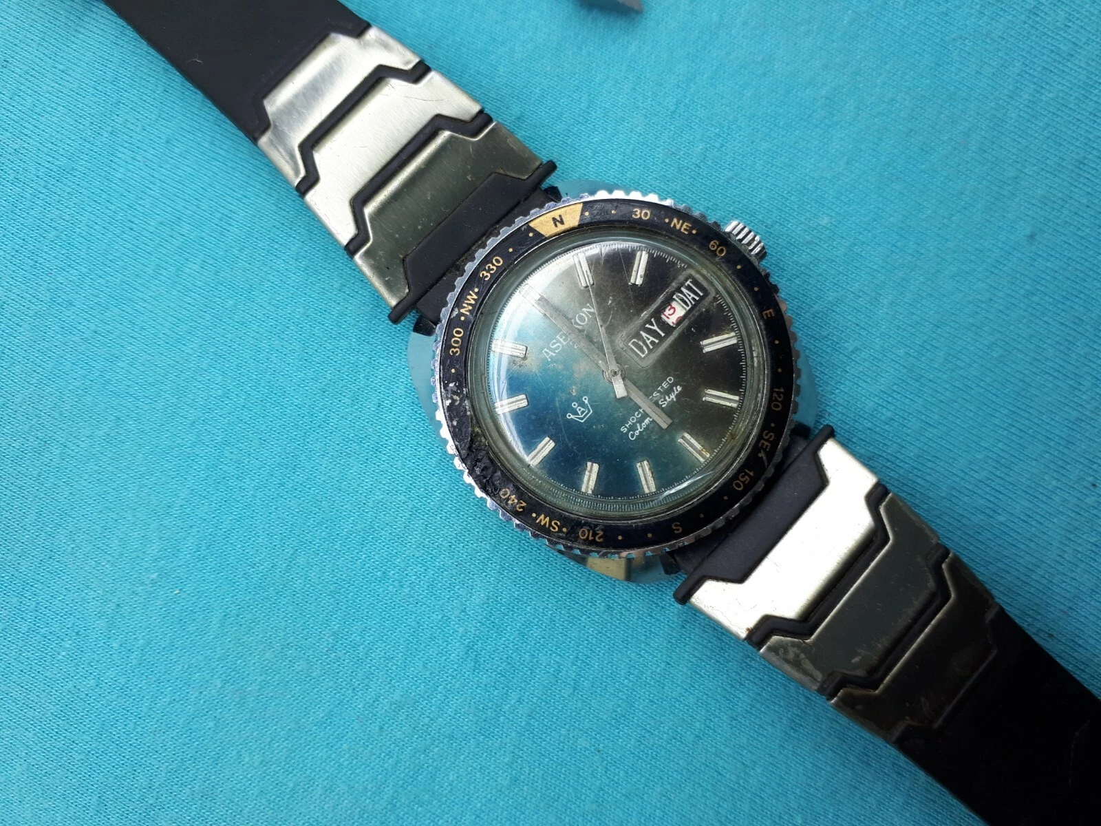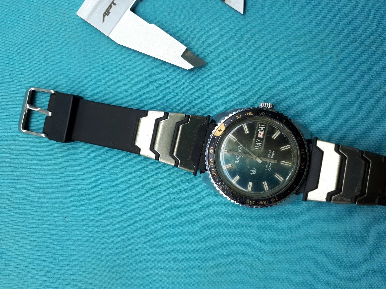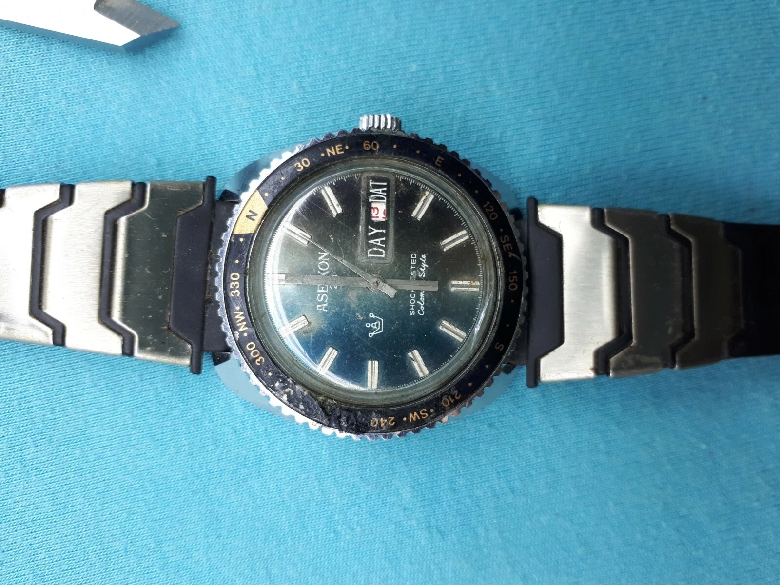 VINTAGE DIVER ASEIKON 23 HAND WIND WATCH MEN’S DATE 1 3/8in "PARTS OR REPAIR"