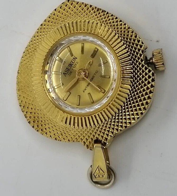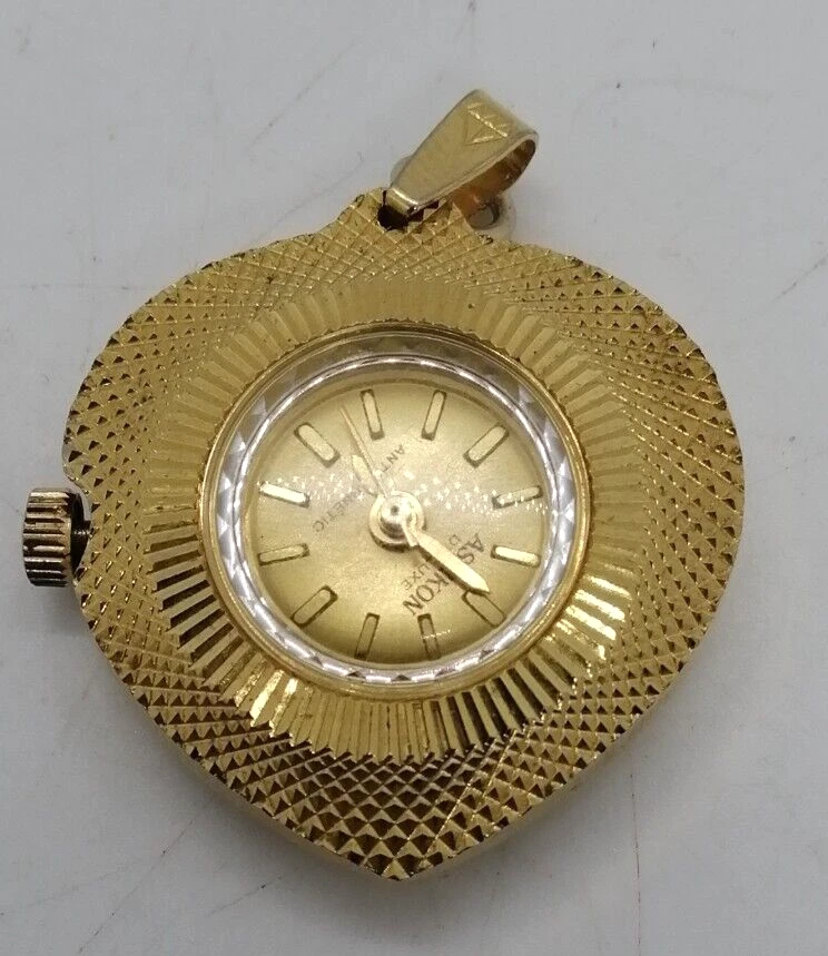 Aseikon De Luxe woman Pendant Watch Chain Mechanical Wind-Up Gold Plated heart