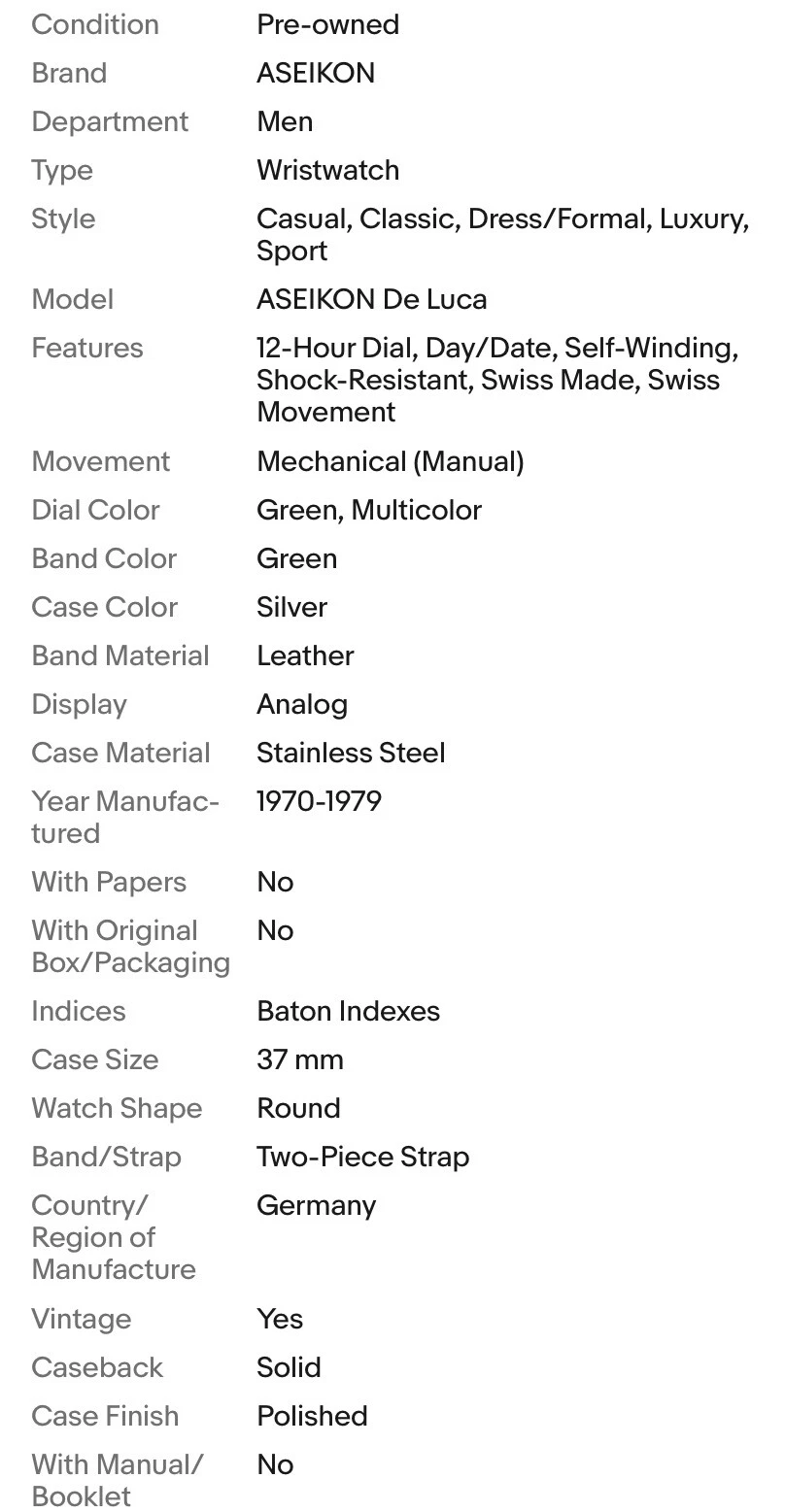 ✅Vintage Men's Watch - Manual Winding - ASEIKON DeLuca - Germany - RARE ✅