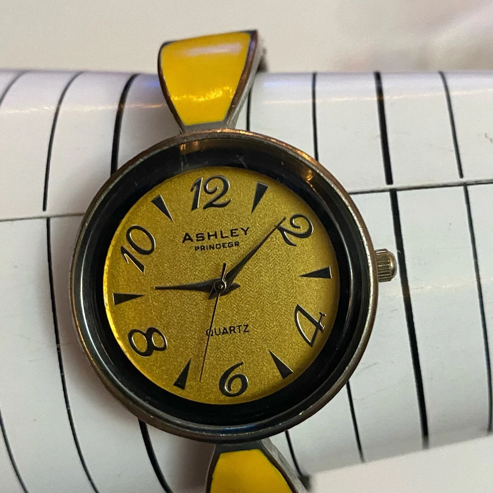 Ashley Princess Yellow Tone Stainless Steel Watch Working New Battery