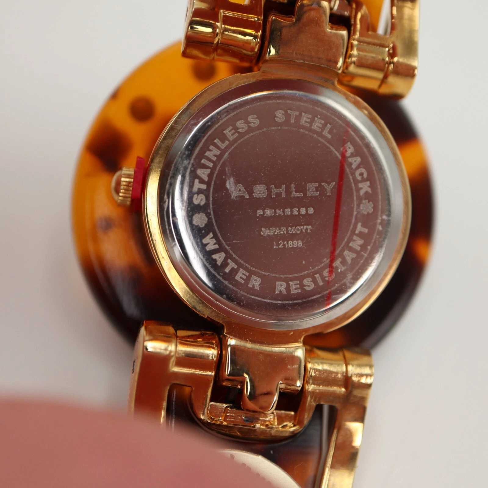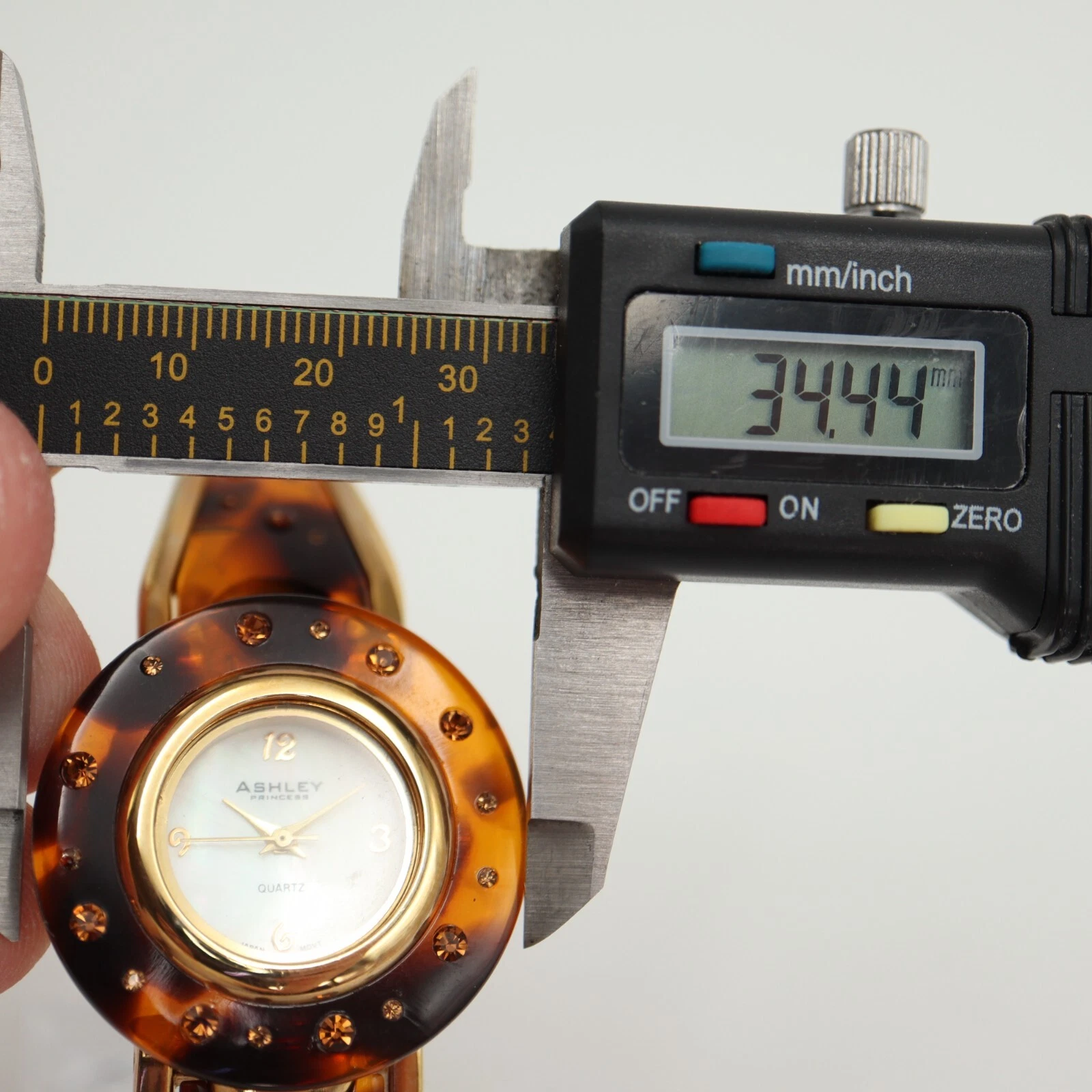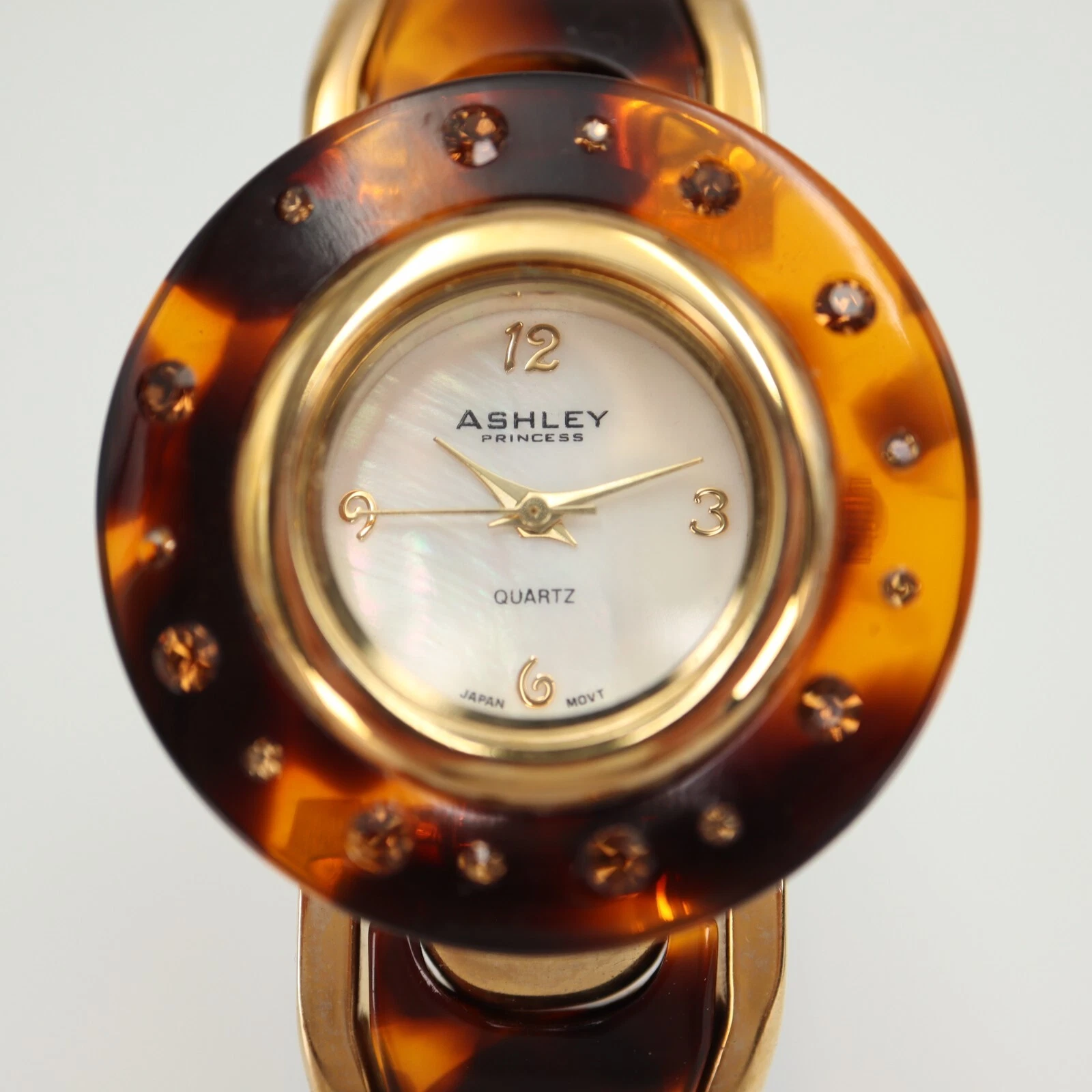 Ashley Princess Womens Watch MOP Dial Tortoise Jewel Bezel Cuff Bracelet Working