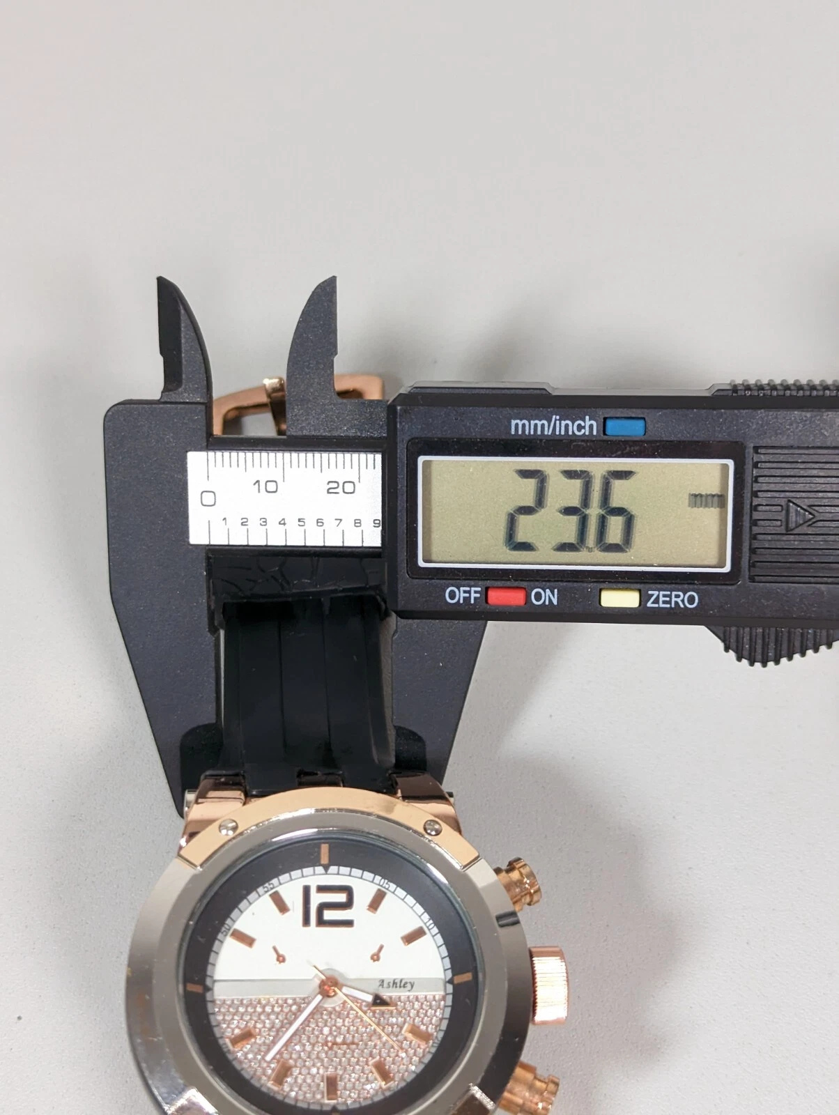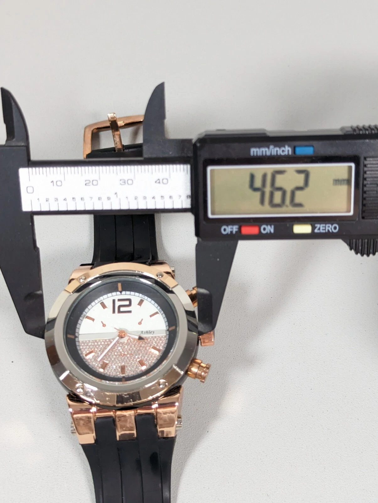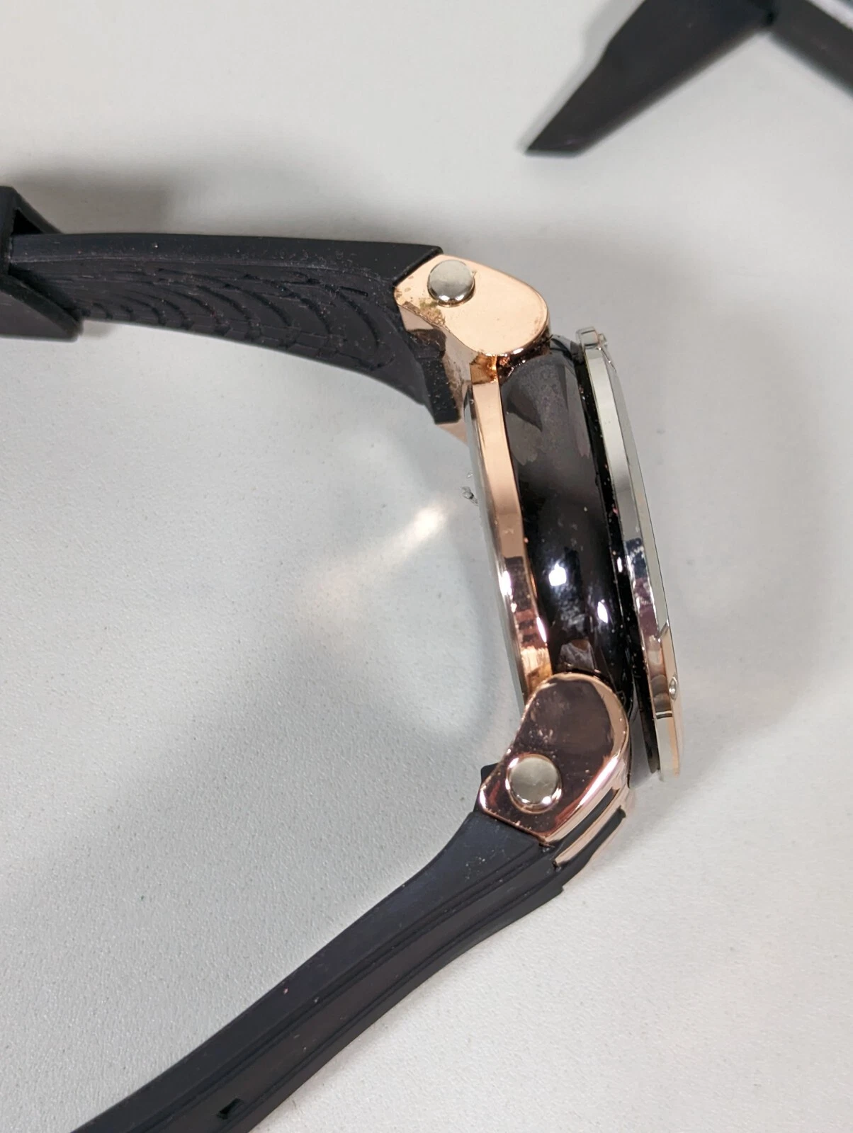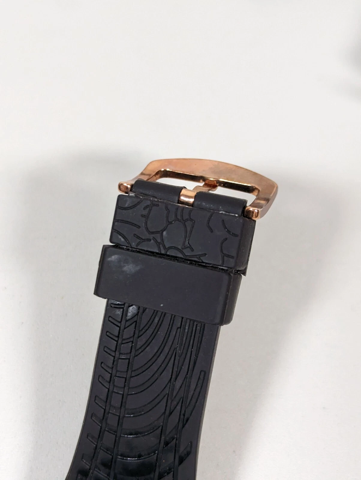 Ashley Princess Rose Gold Tone Round Case Black Silicone Band Watch 8.5 Inch