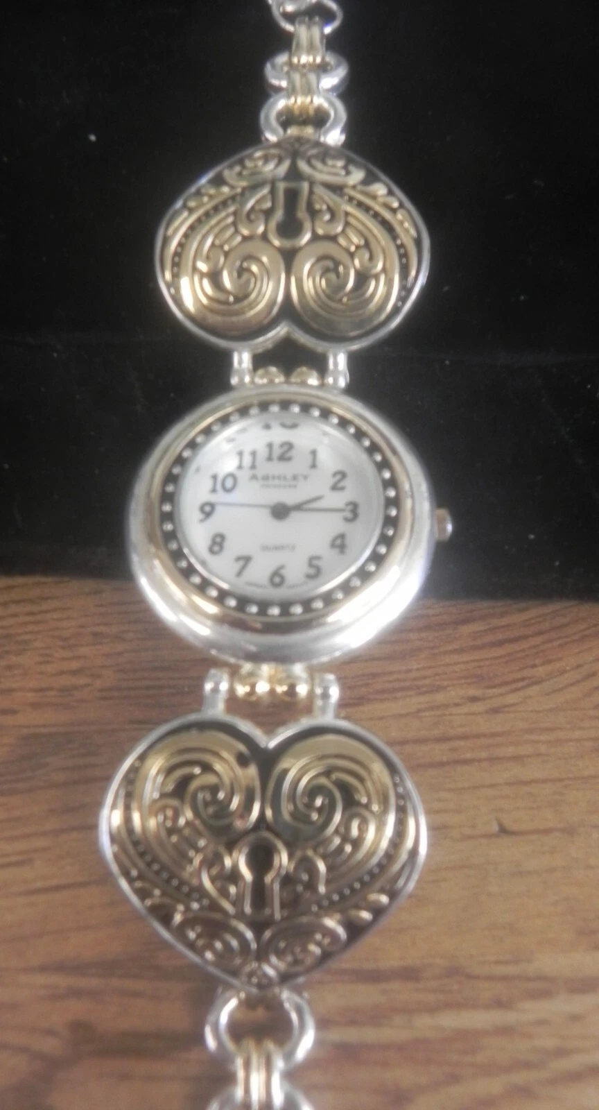 Ashley Princess Silver Tone Metal Case Bracelet Women Watch .HEART BRACELET BAND