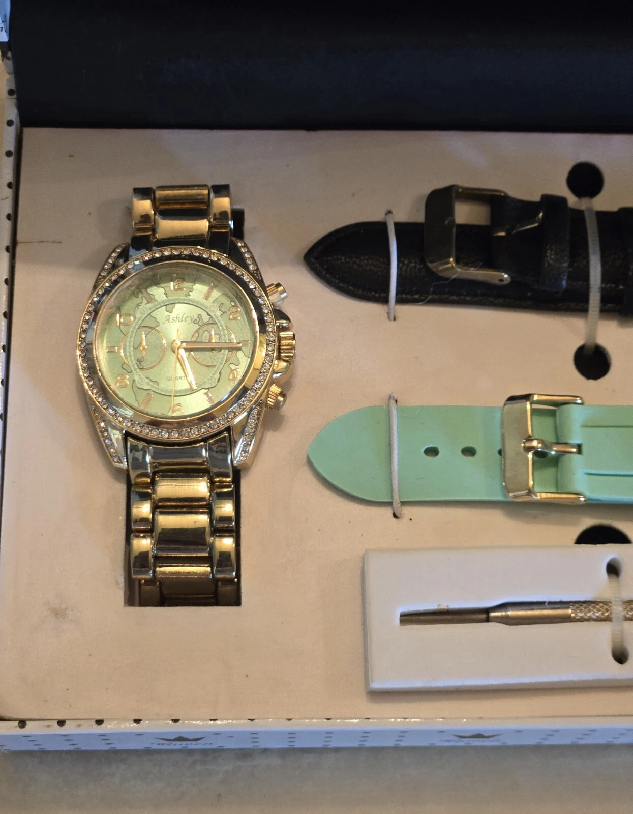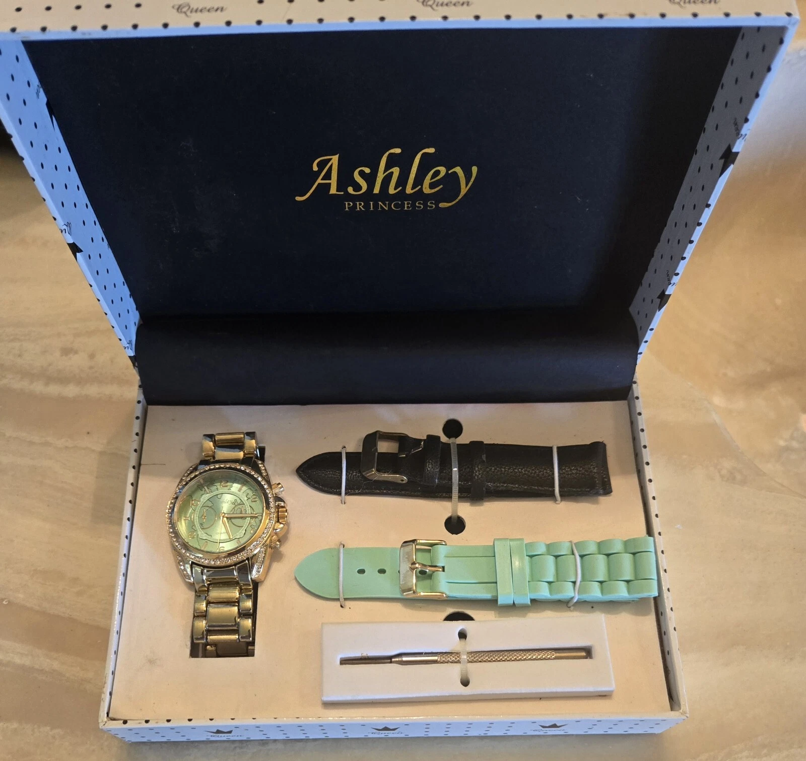 Ashley Princess Queen Watch 7694 GLD-MINT Needs New Battery