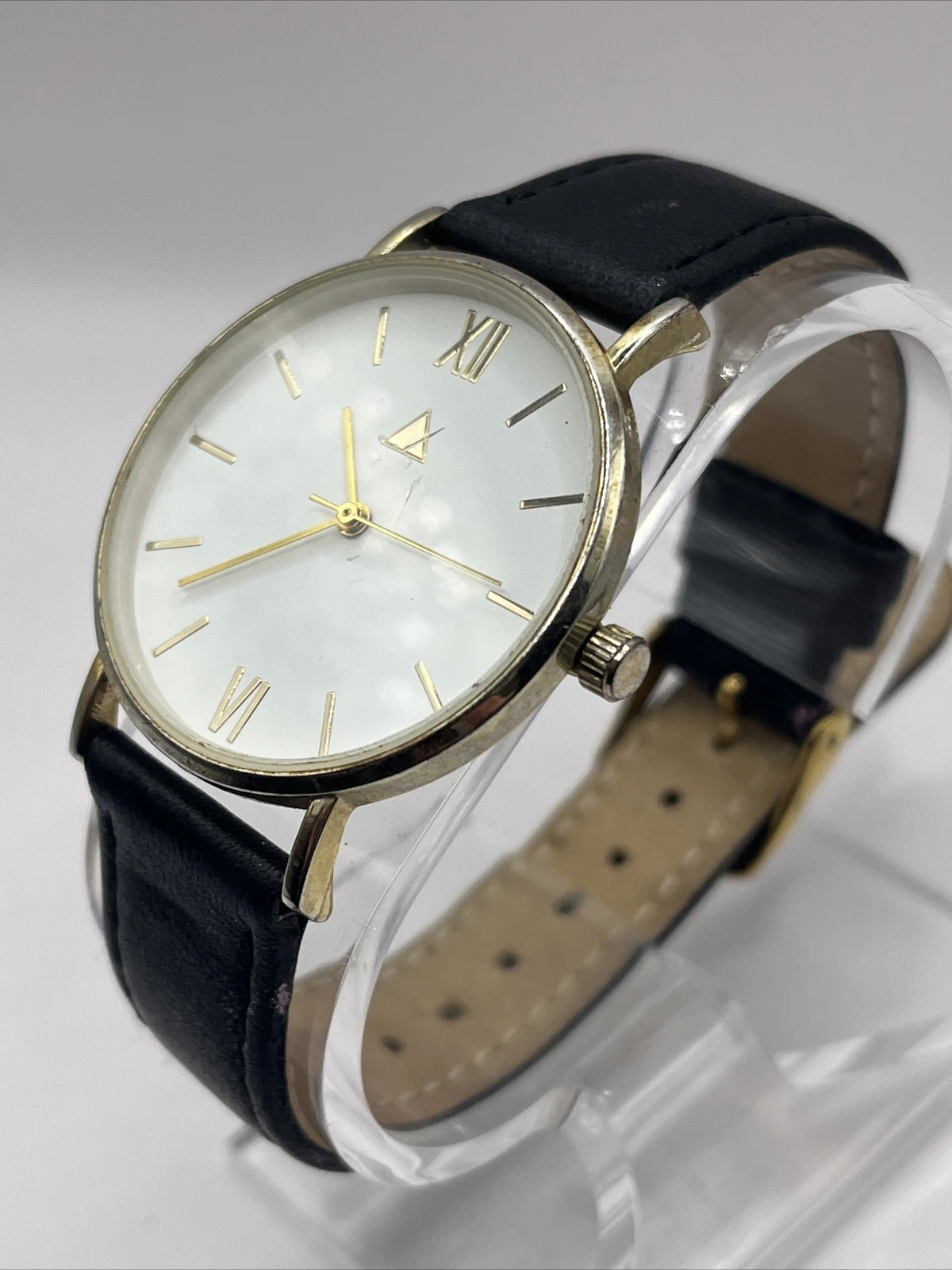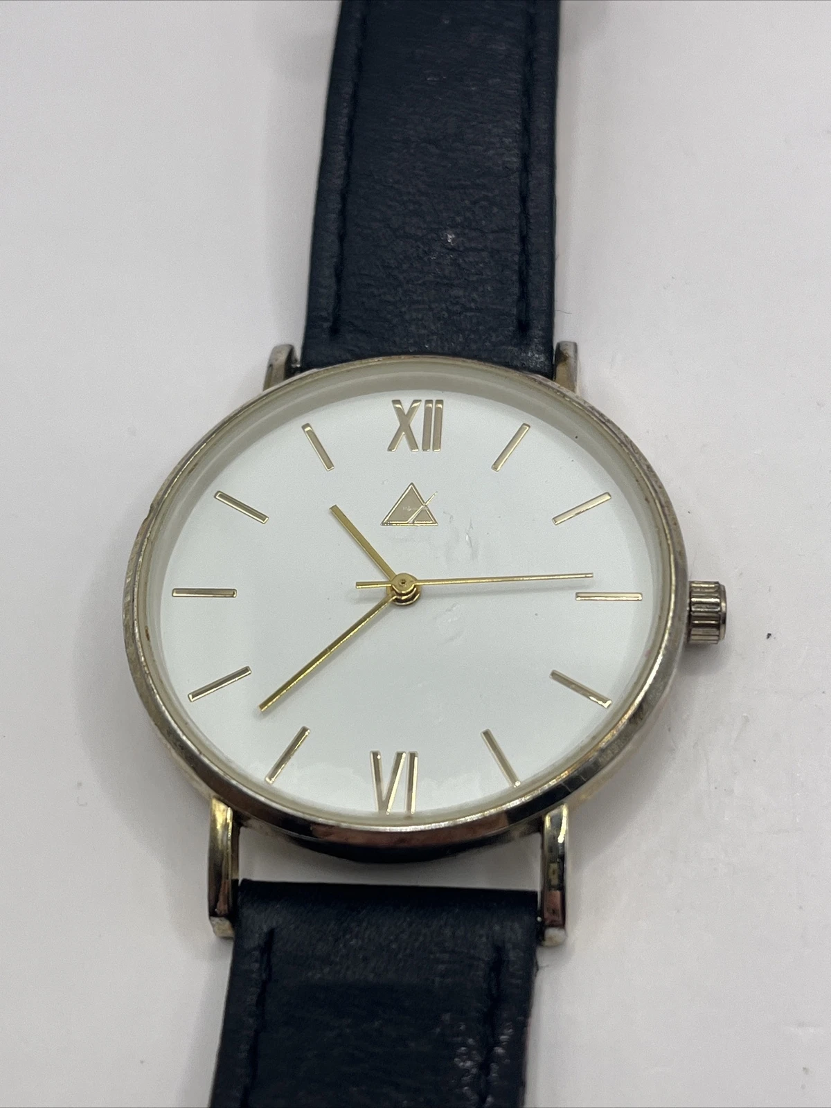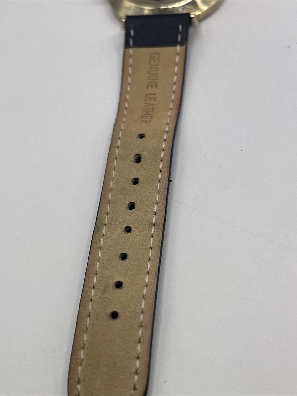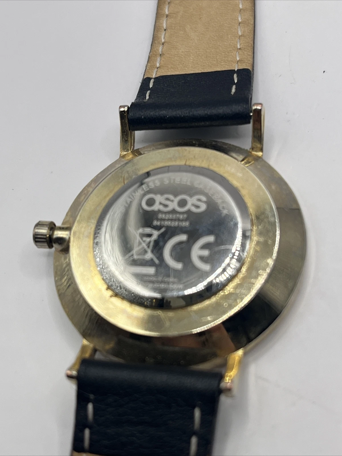 Asos Women's Quartz Watch Gold Tone Case Black Leather Band- New Battery