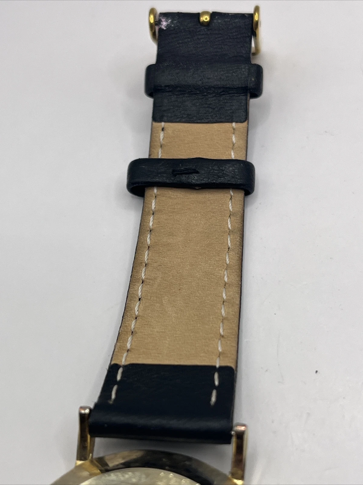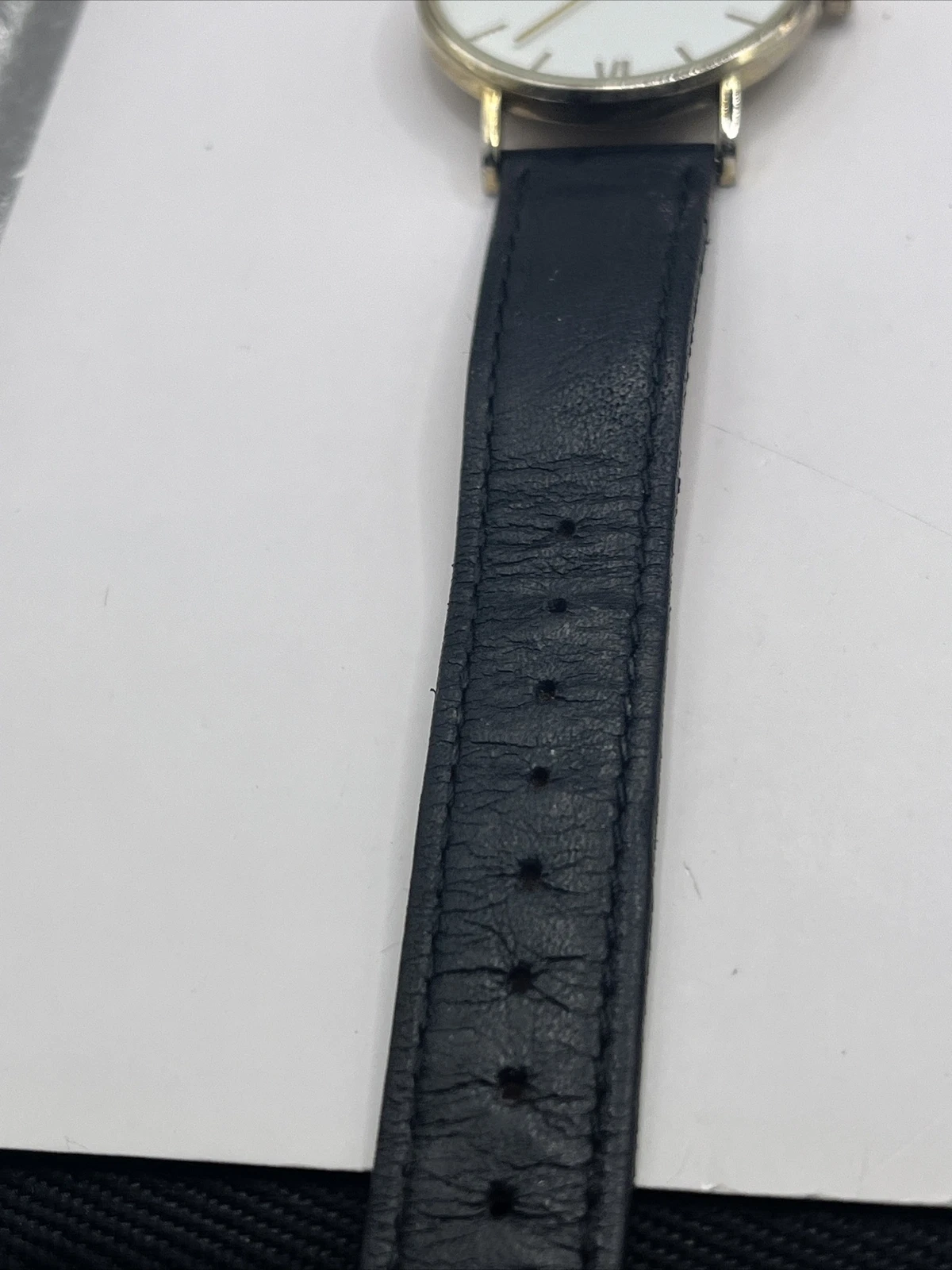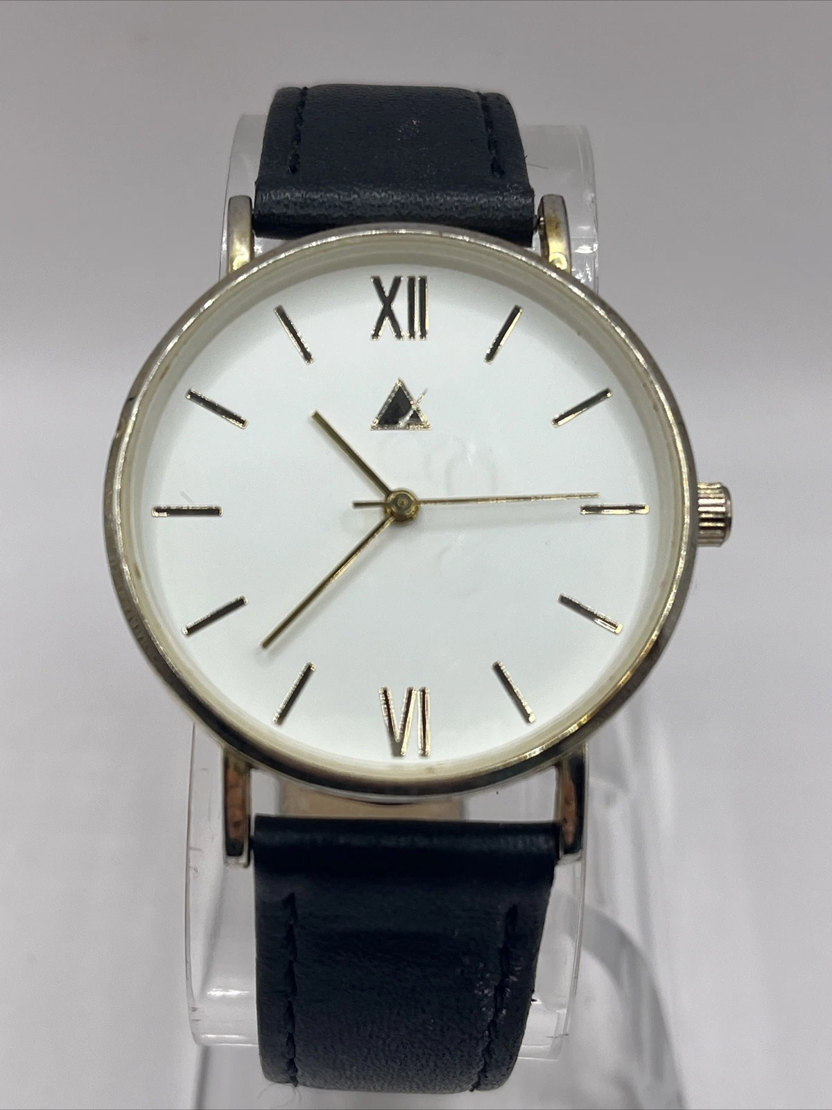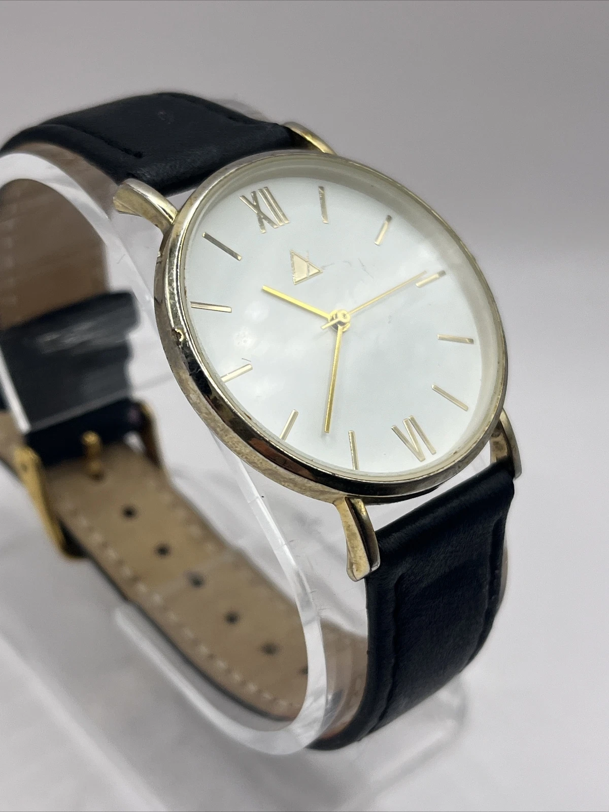 Asos Women's Quartz Watch Gold Tone Case Black Leather Band- New Battery