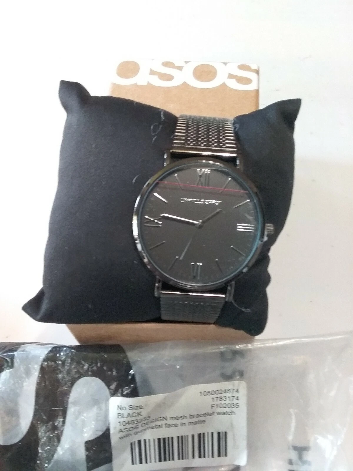 ASOS Design Mesh Bracelet Watch With Gunmetal Face In Matte