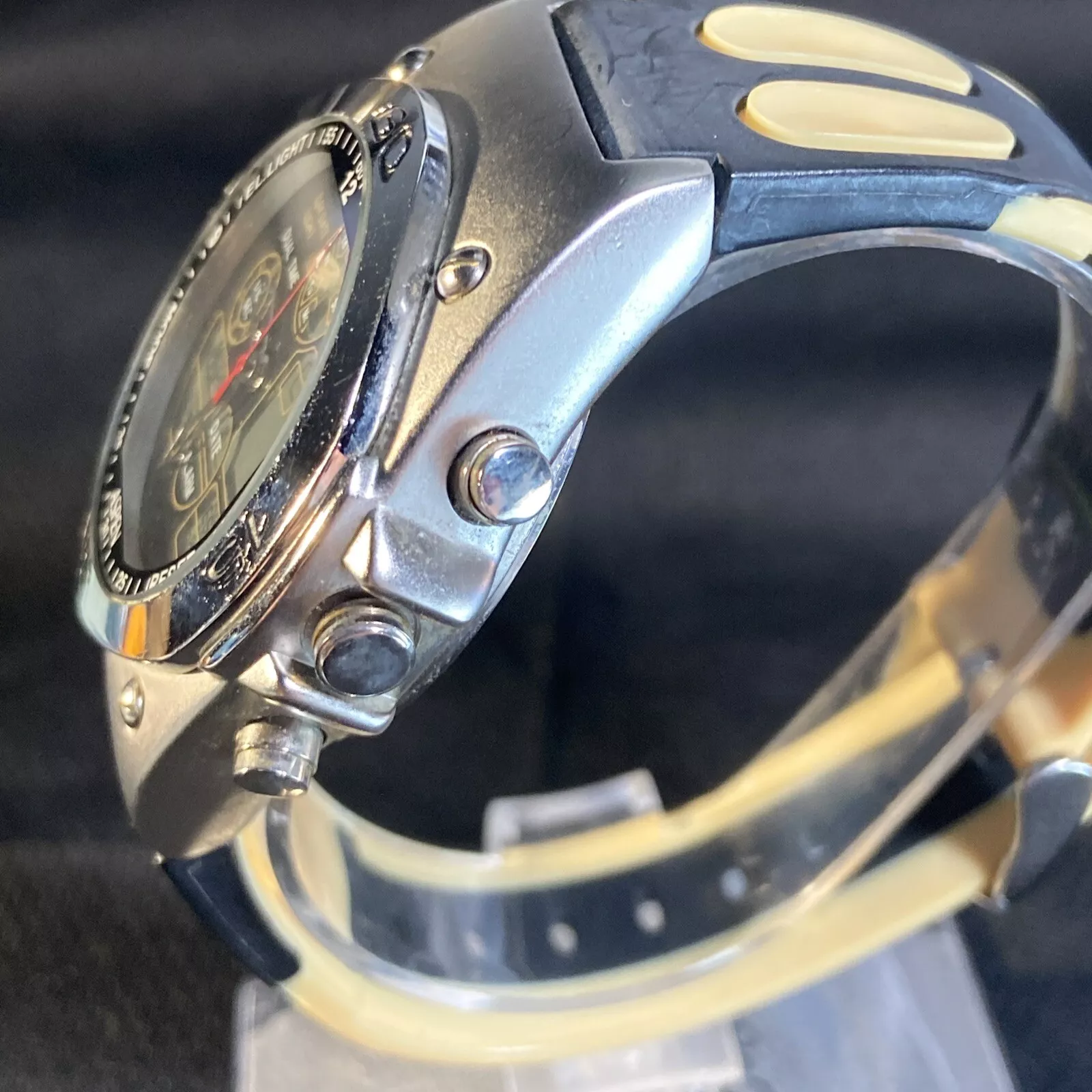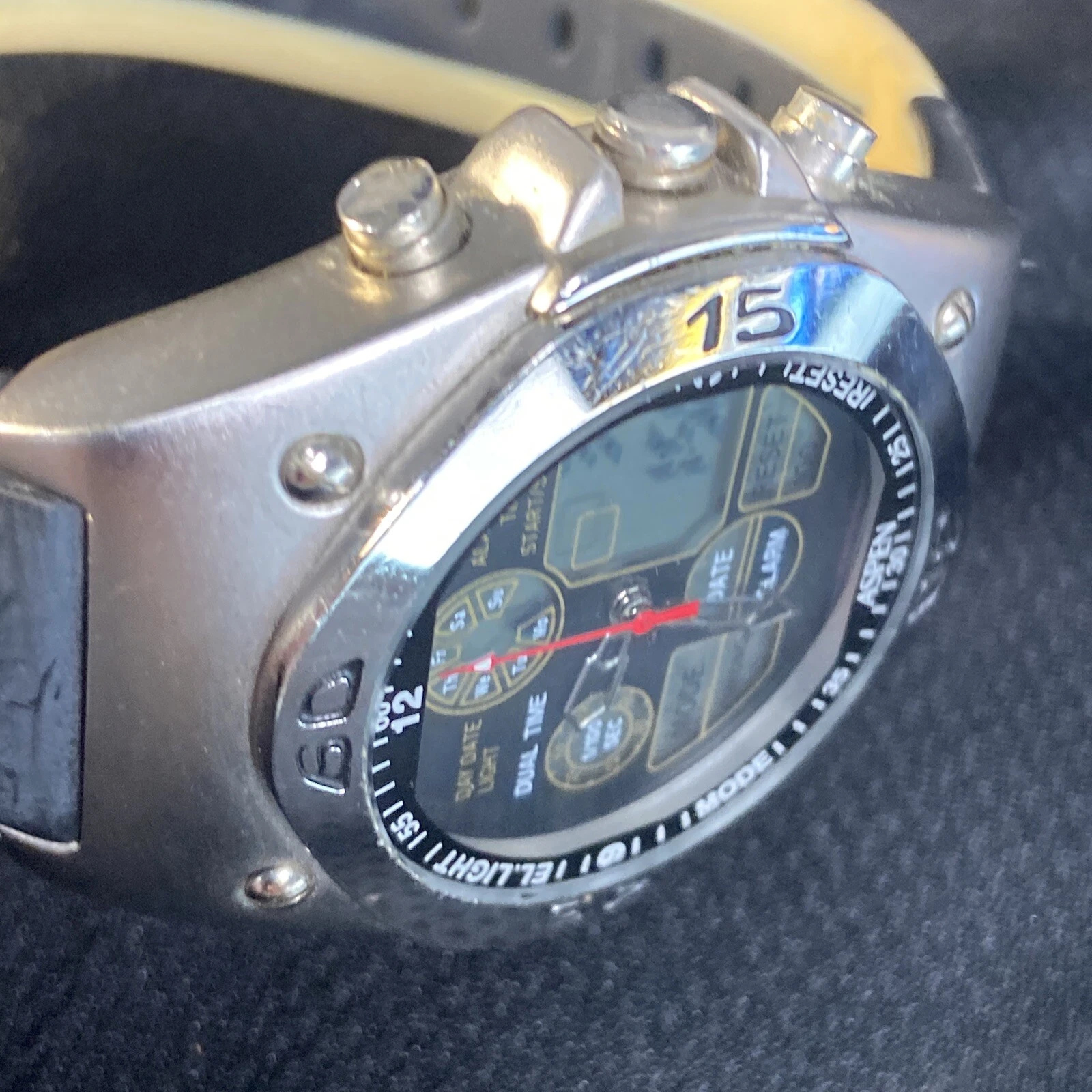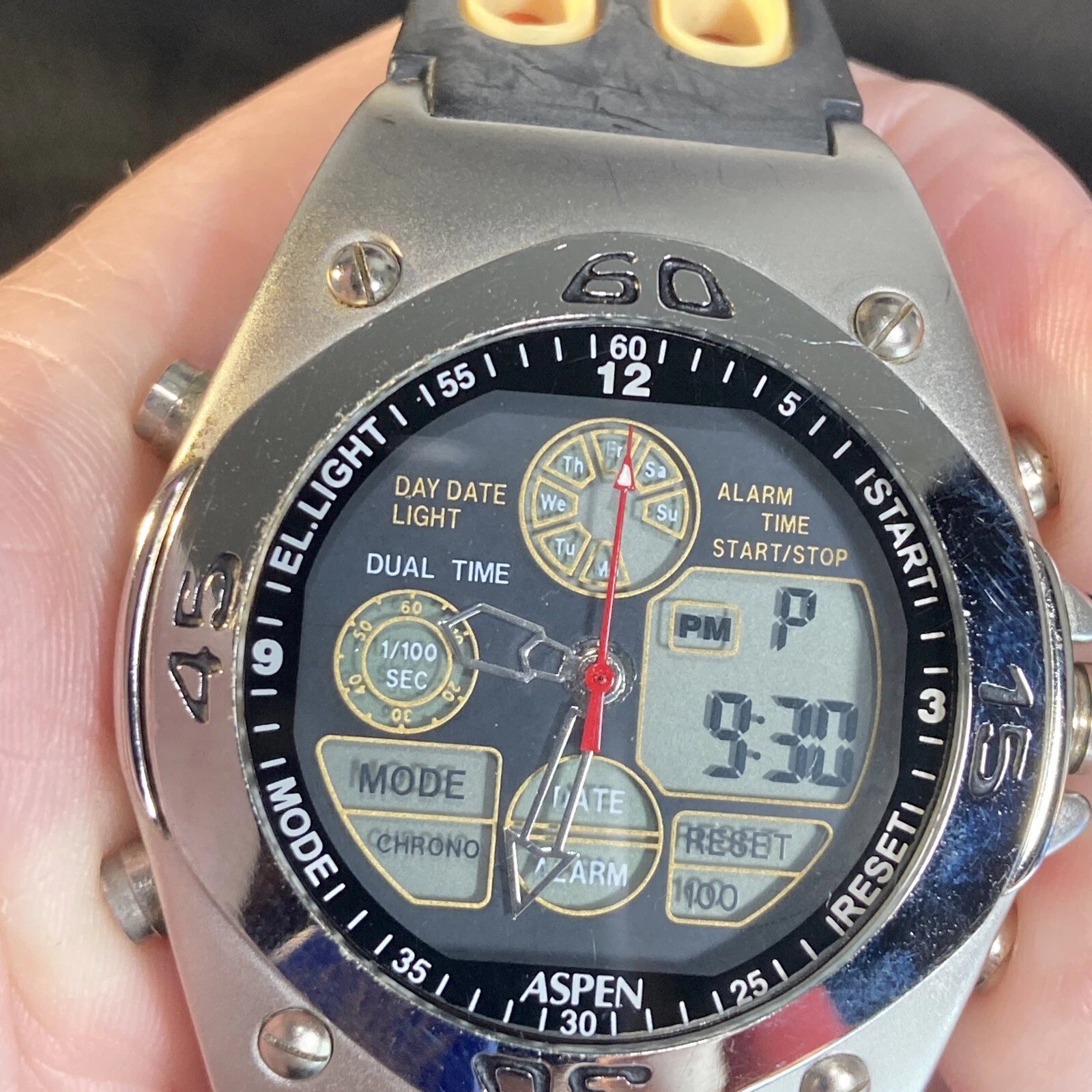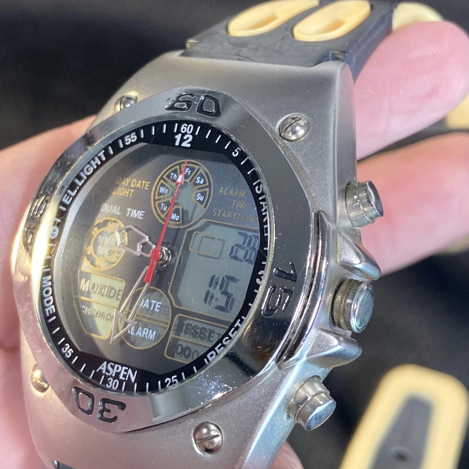 Vtg Men's Aspen Dual Time Alarm 40mm Day Date Chrono Chrome Rare Style READ