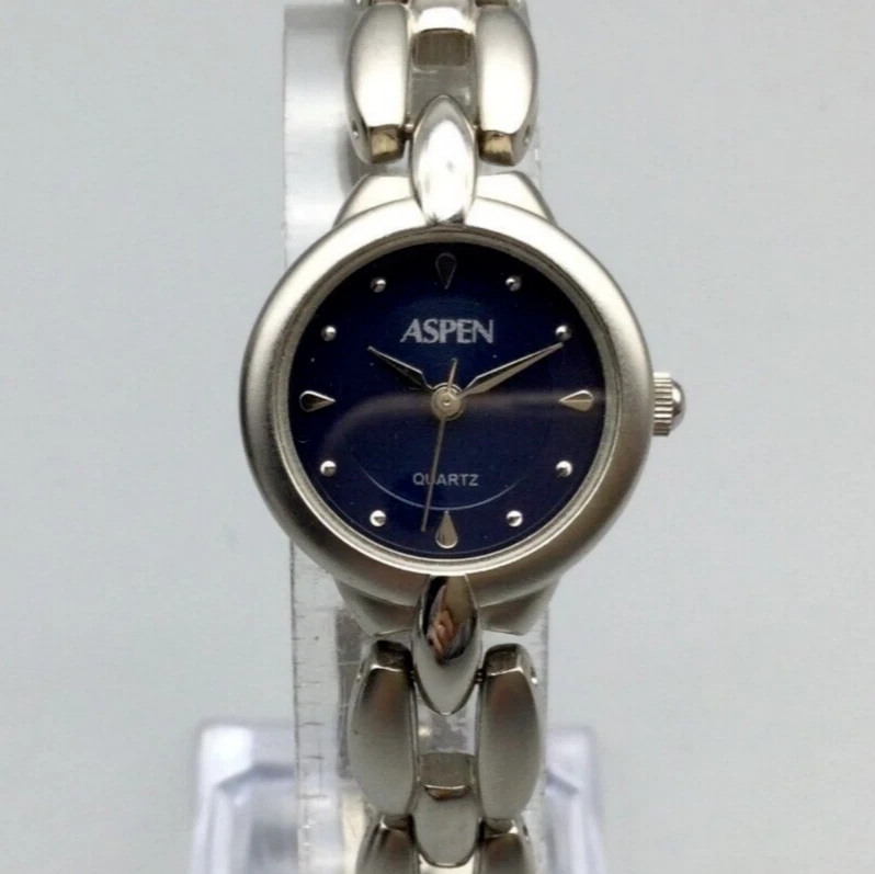Aspen Watch Women 22mm Silver Tone Blue Dial New Battery 7"