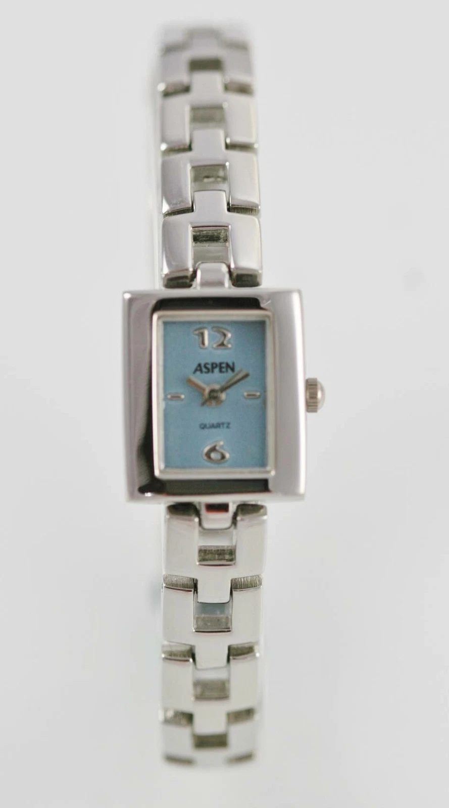 Aspen Blue Women's Stainless Steel Silver Blue Easy Read Quartz Battery Watch