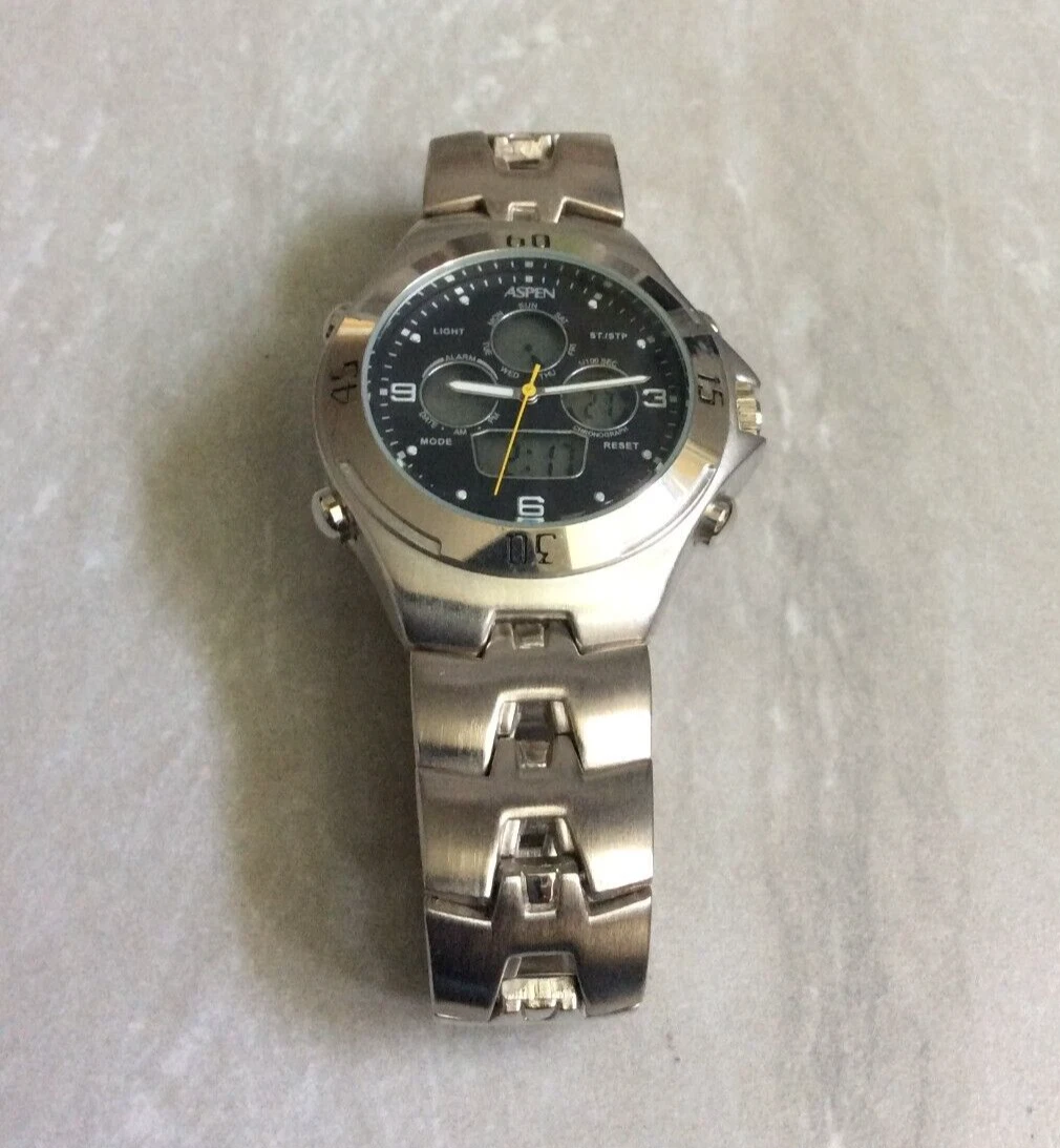 Aspen Men's Watch Analog-Digital Chrono Dial on Silver Stainless Steel Band New!