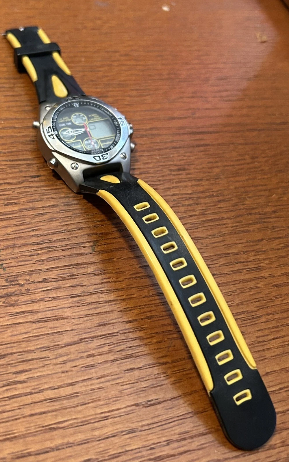 Vtg Men's Aspen Dual Time Alarm 40mm Day Date Chrono Chrome Needs Band & Battery