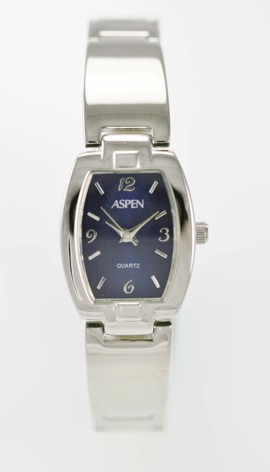 Aspen Womens Watch Stainless Silver Steel Water Resistant Battery Blue Quartz