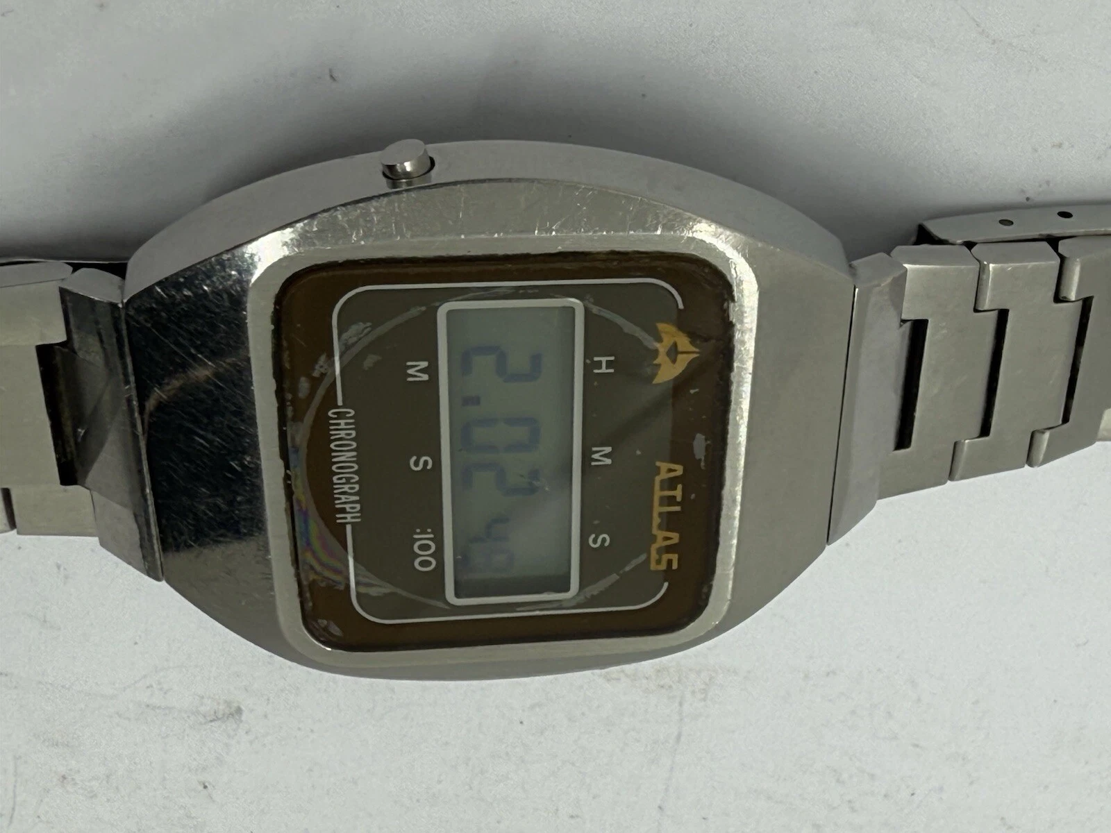 Vintage Atlas Digital Chronograph Watch Quartz 810013-Wristwatch Working Rare