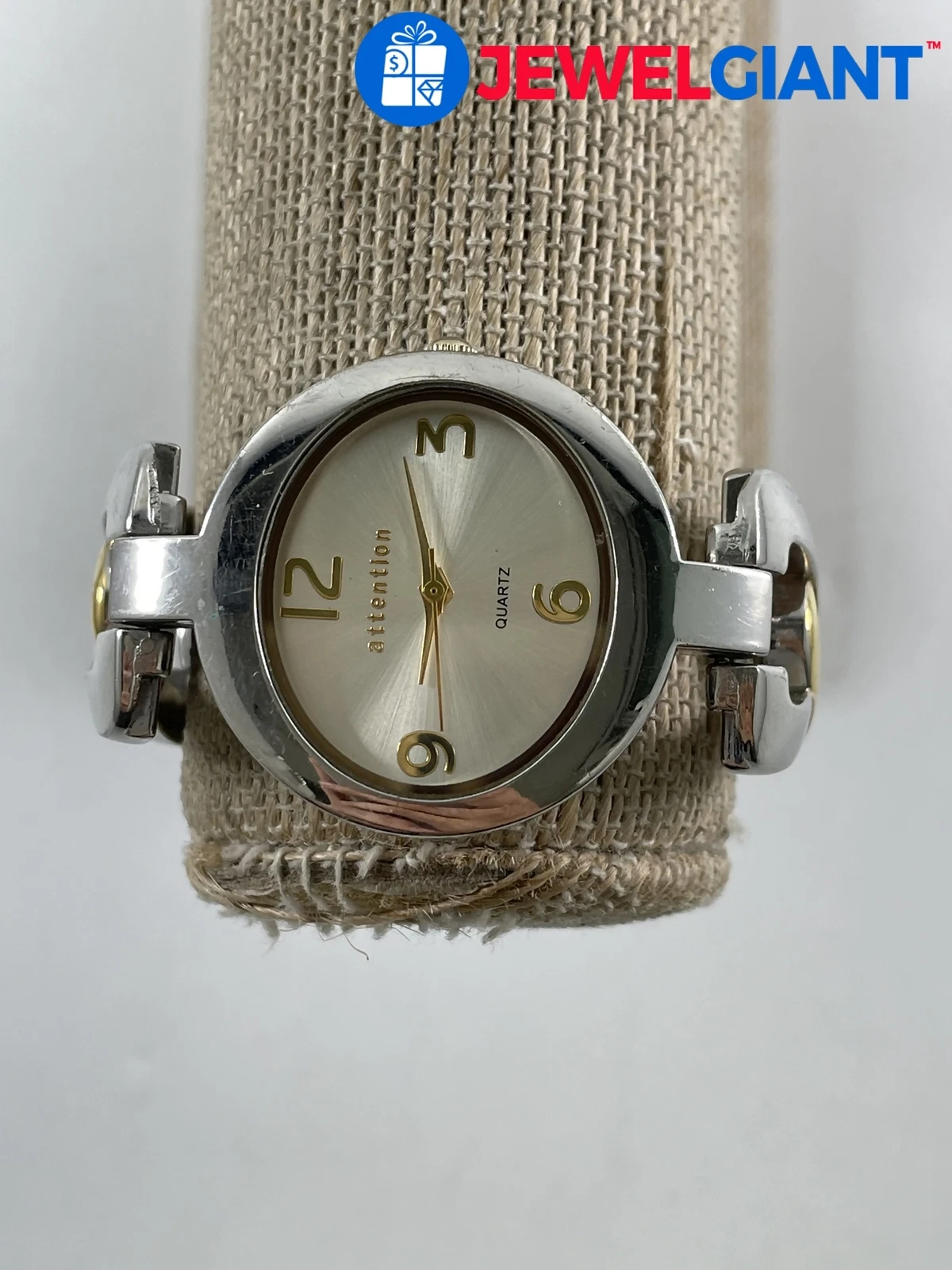 ATTENTION WATCH 8 INCH TWO-TONE STAINLESS STEEL NEEDS BATTERY  #FK550