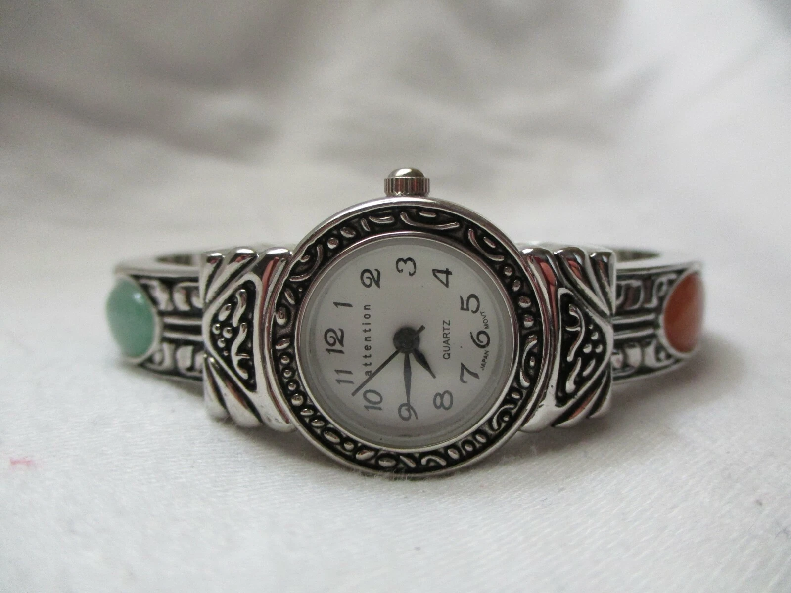 Attention Analog Wristwatch with a Cuff Band and Quartz Movement