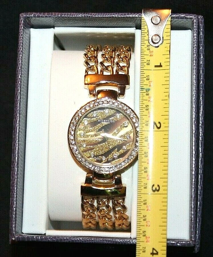Attention Gold Tone Crystal Rimmed Glittery Animal Print  Wristwatch Watch