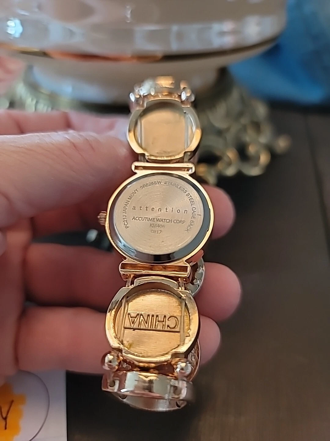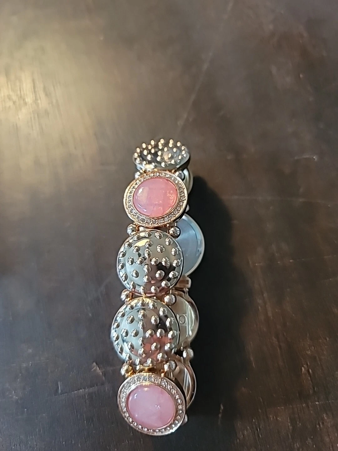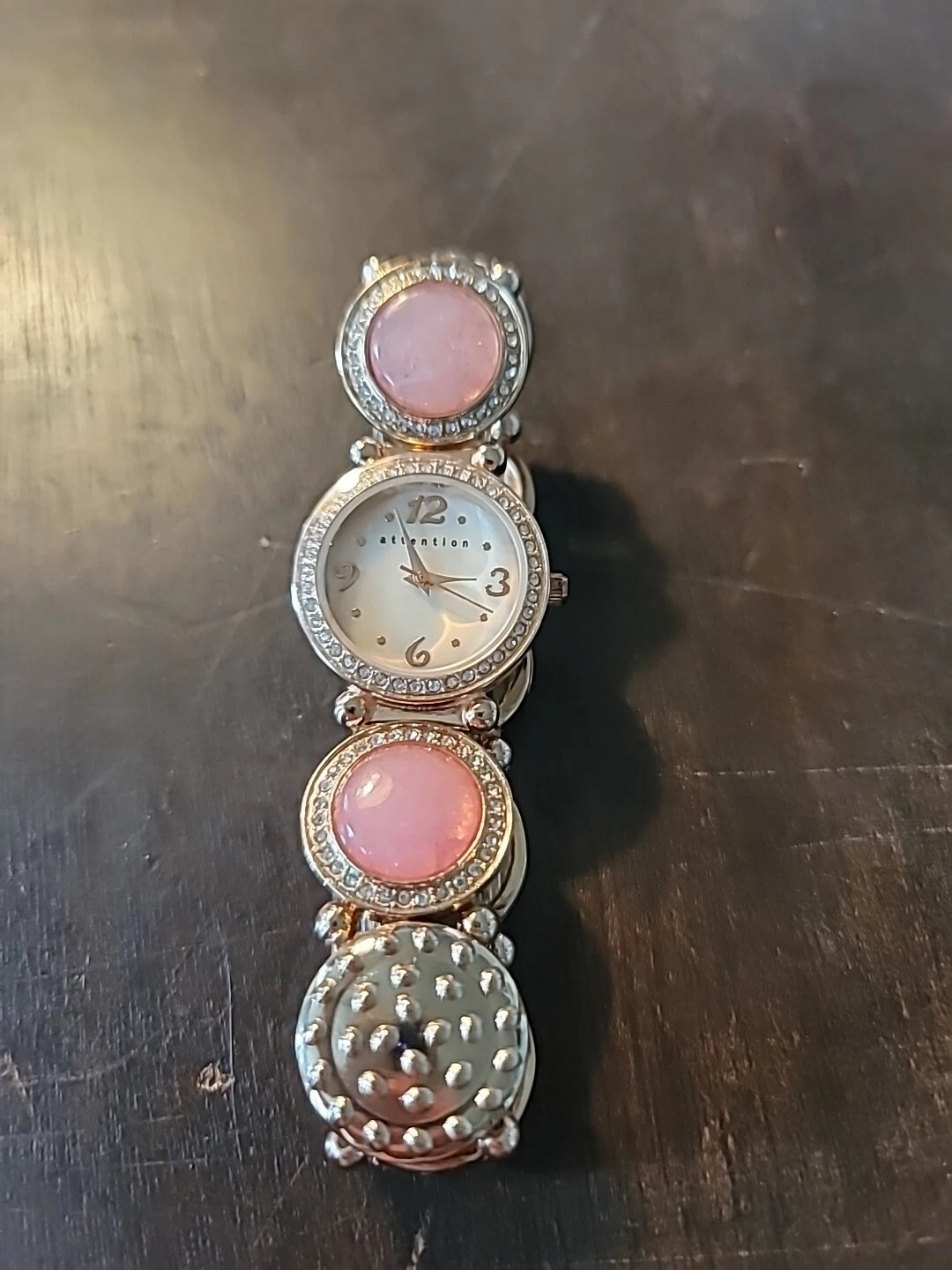 Attention Ladies Wristwatch Bracelet W/ Rose Gold Band & Pearl Tone Face.Elastic