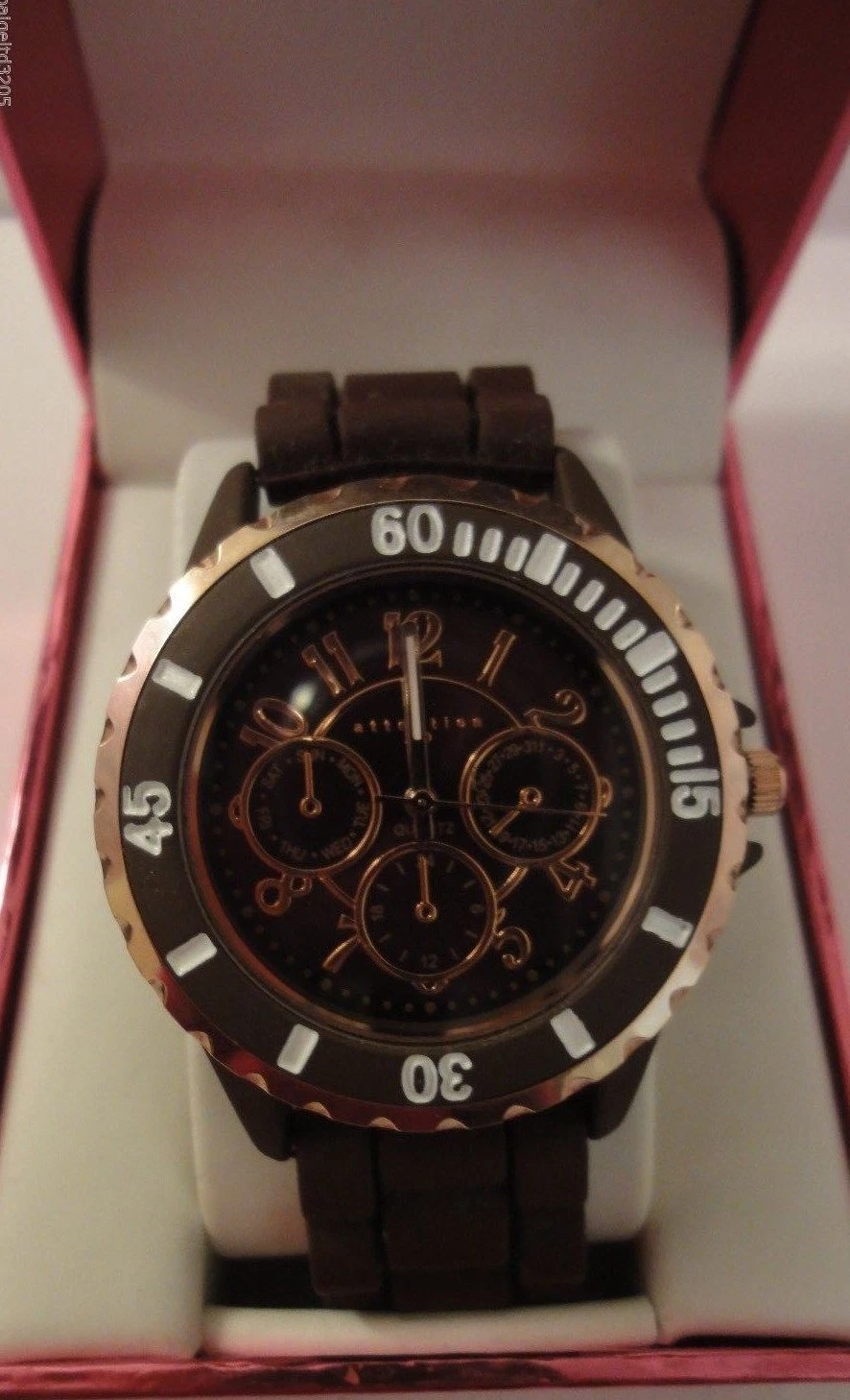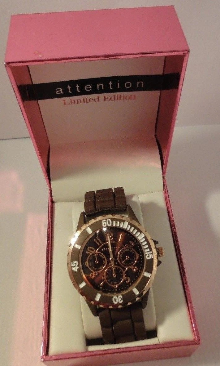 Attention Limited Edition Ladies' Two-Tone Rubber Bracelet Watch Rose Gold/Brown