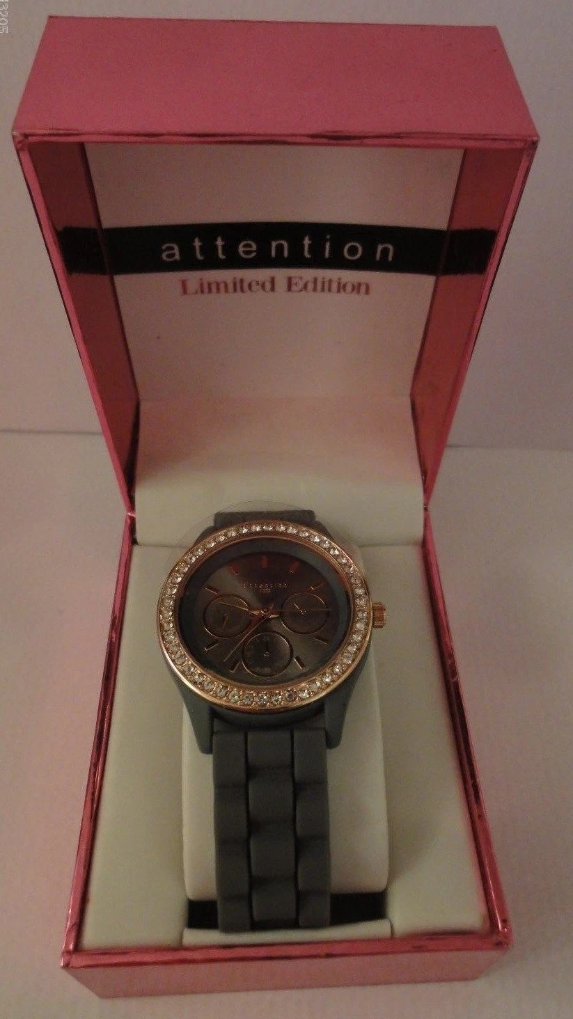 Attention Ladies' Rubber Bracelet Grey Watch w/ Swarovski Crystals